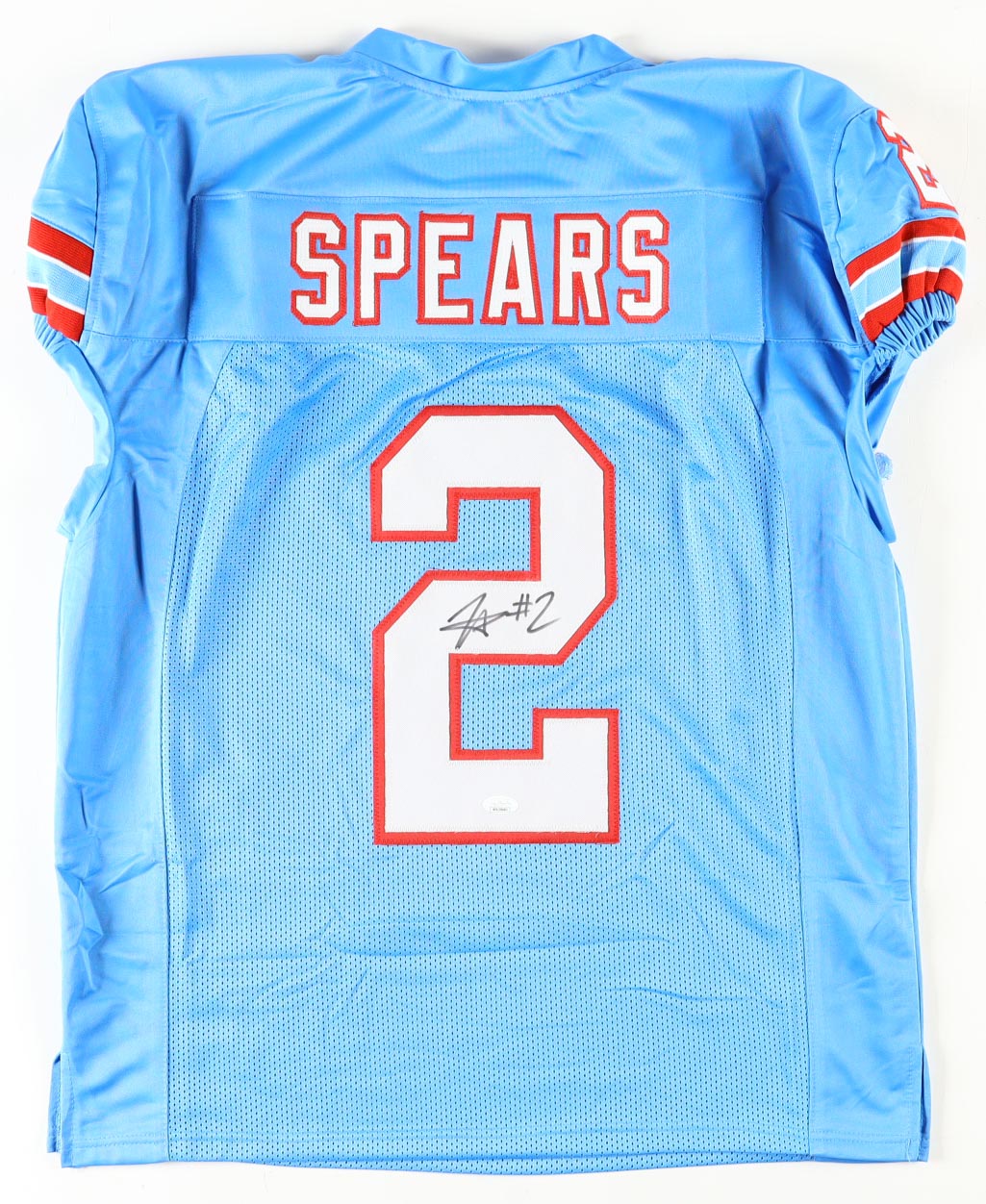 Custom jersey. Everything sewn on, size XL. Hand-signed by Tyjae Spears.