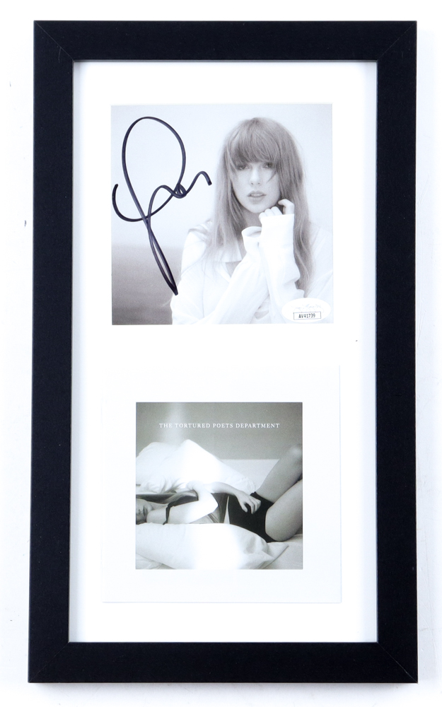 Custom frame measures approximately 8" x 13.5" in size. Features a "The Torture Poets Department" CD insert that has been hand-signed by Taylor Swift.