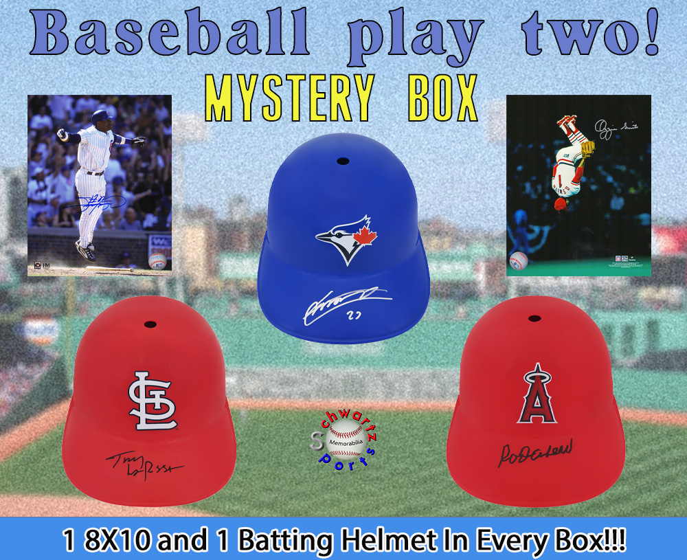 Baseball PLAY TWO! Mystery Box – Series 4 (Limited to 150) (1 Signed Baseball 8x10 Photo & 1 Signed Batting Helmet in EVERY BOX!!) - Schwartz Sports