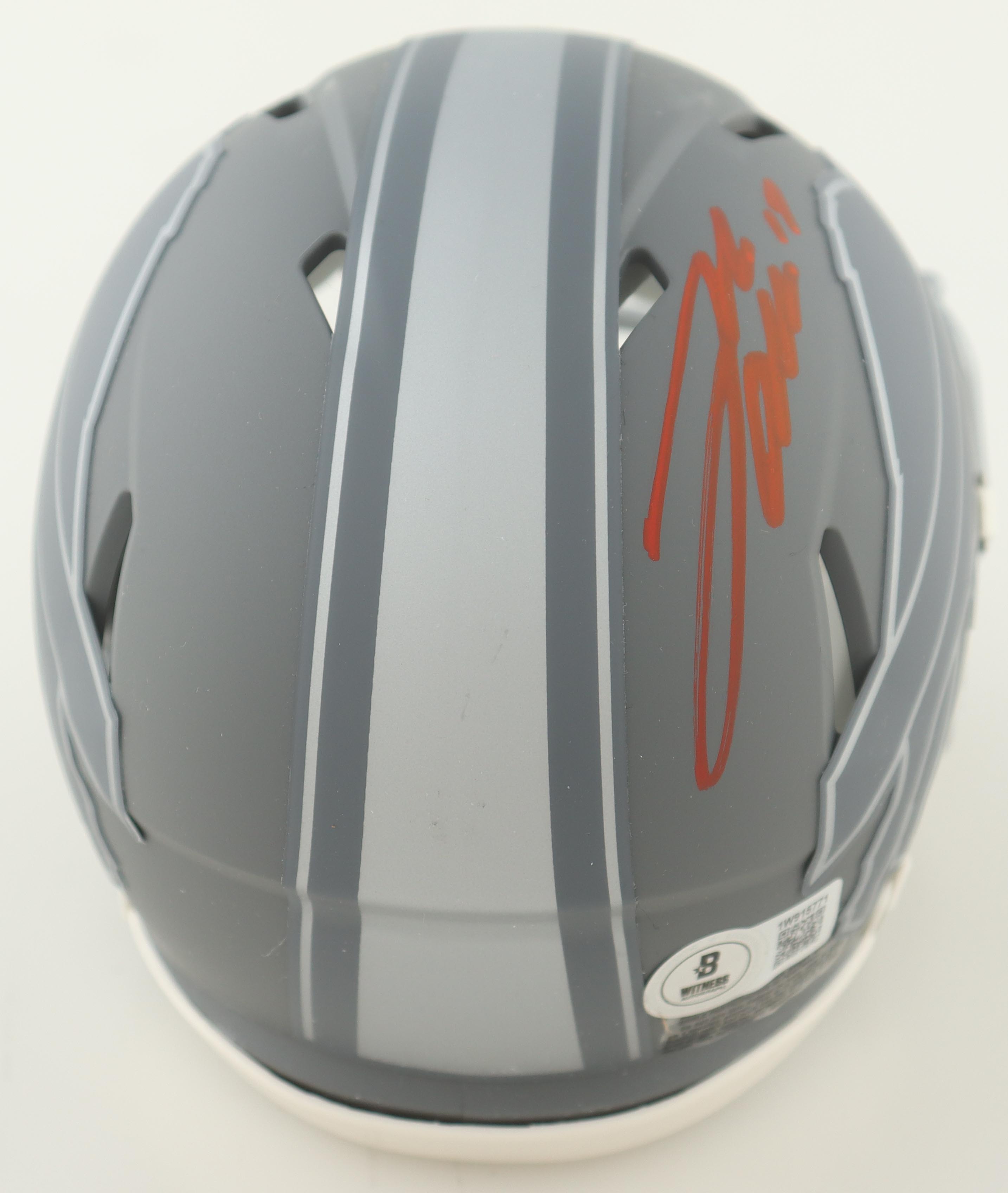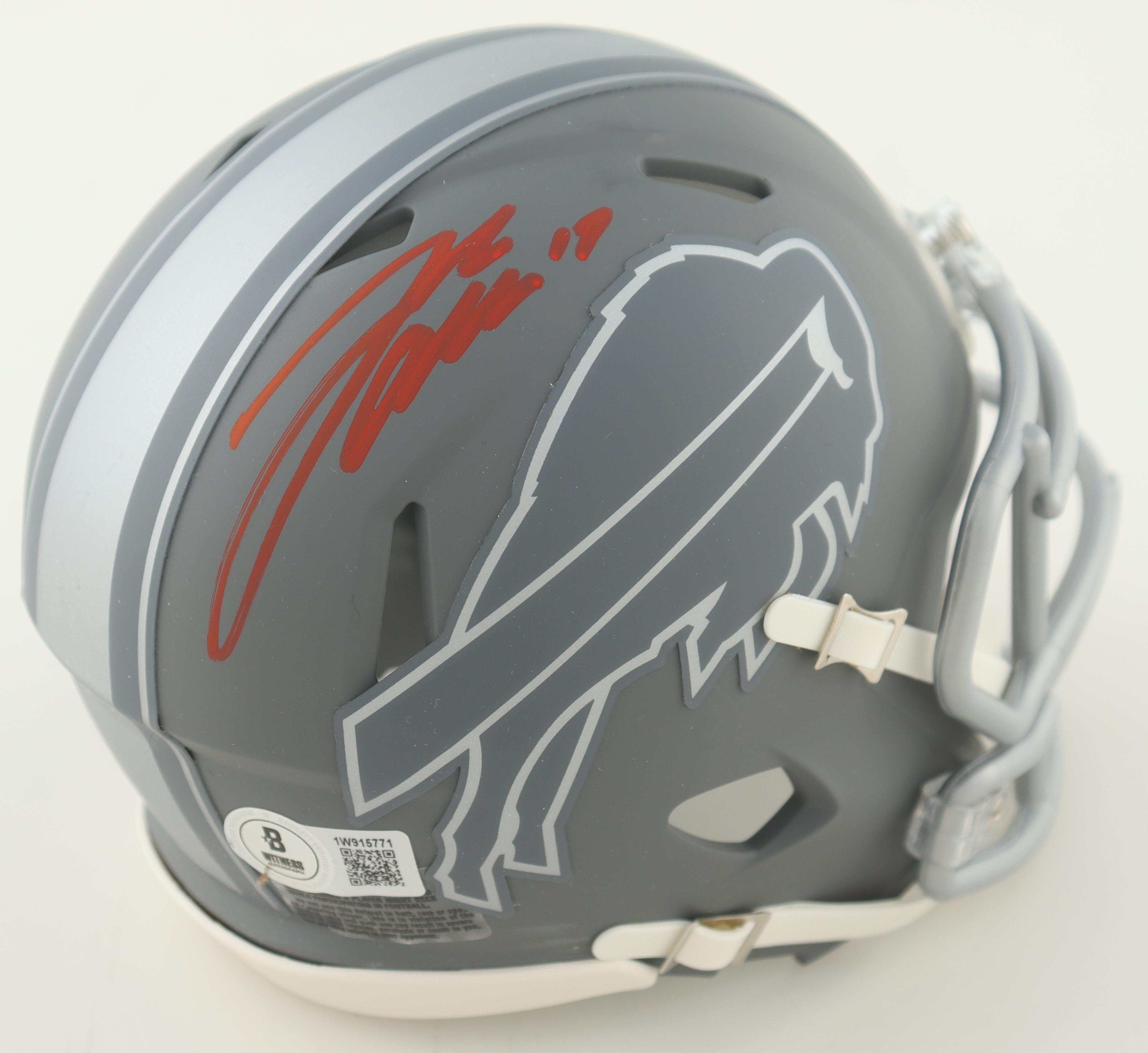 Riddell Buffalo Bills Slate alternate speed mini helmet has been hand-signed by Josh Allen.