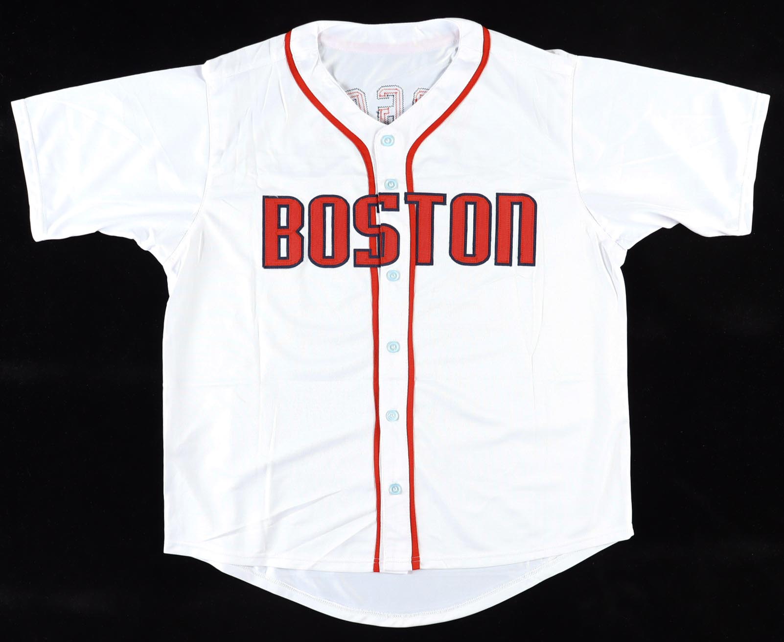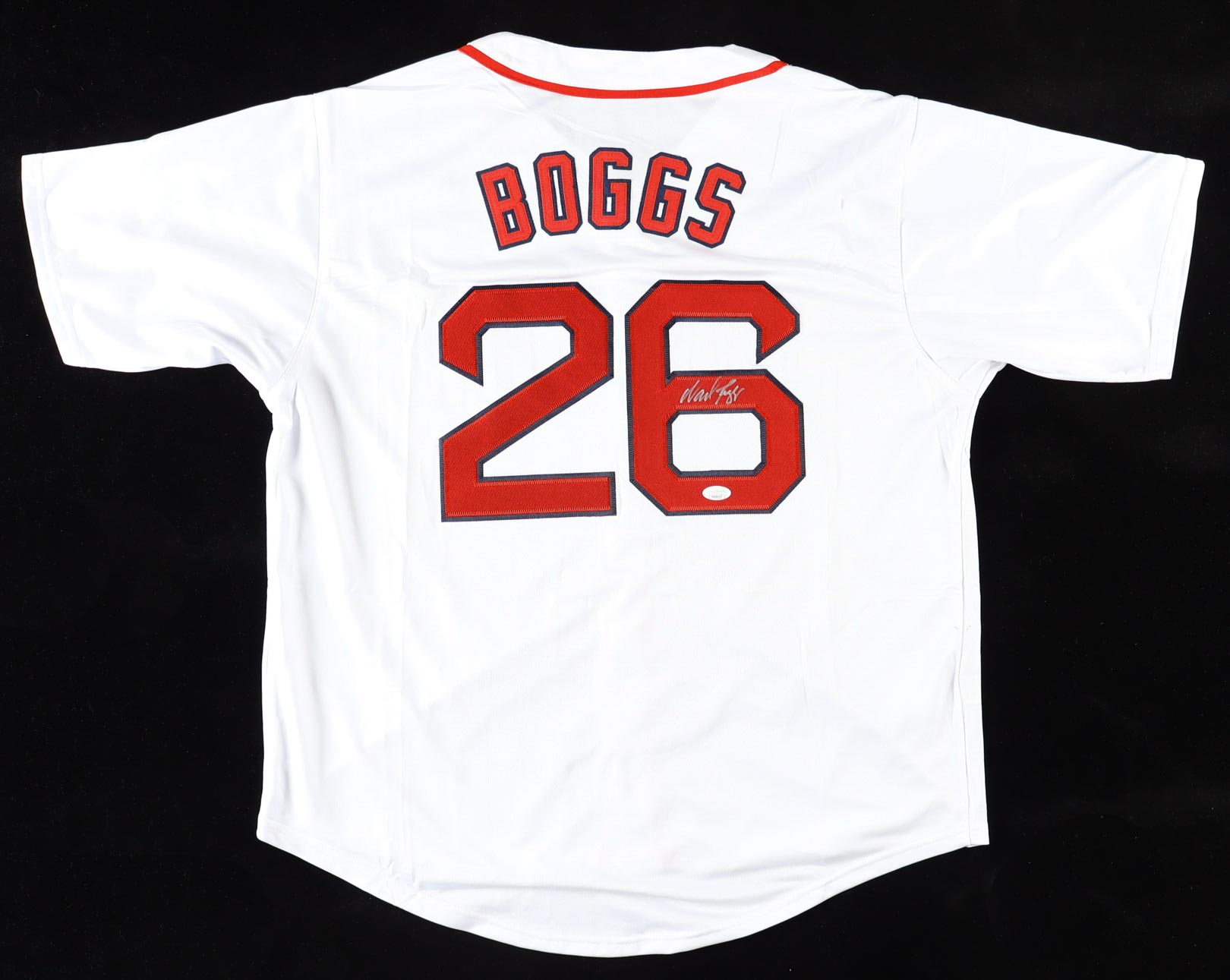 Custom jersey with everything sewn on, size XL. Hand-signed by Wade Boggs (HOF, Boston Red Sox).