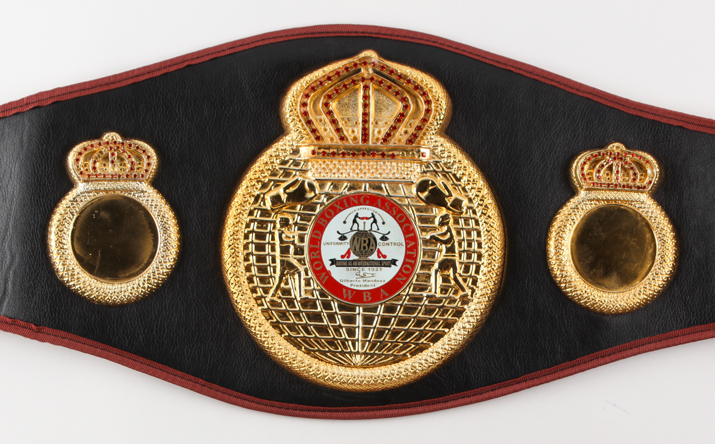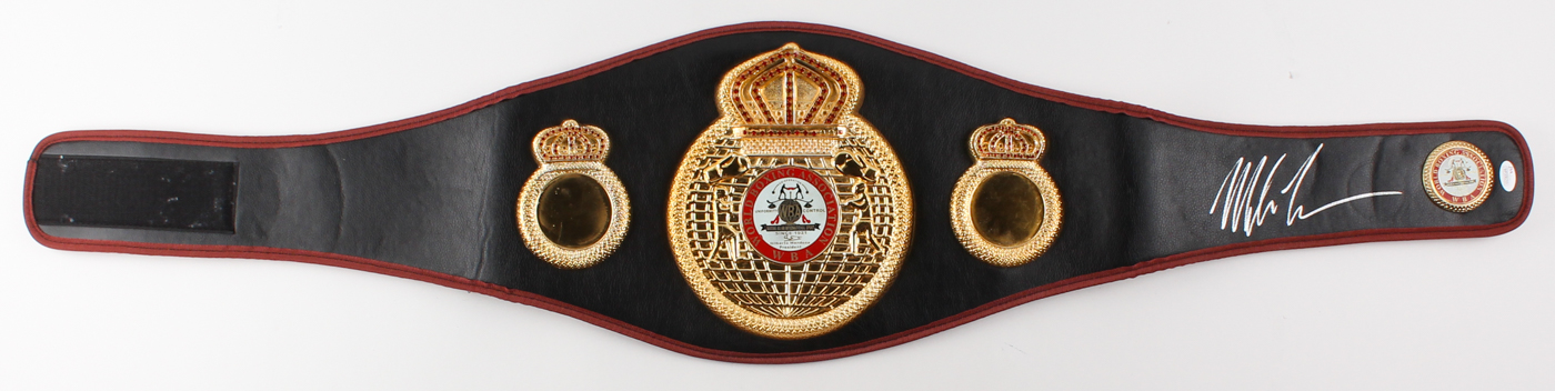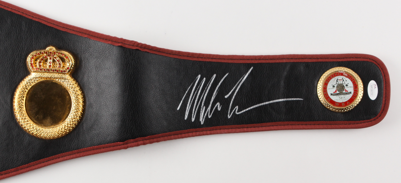 WBA Heavyweight Championship belt has been hand-signed in silver paint pen by Mike Tyson (HOF).