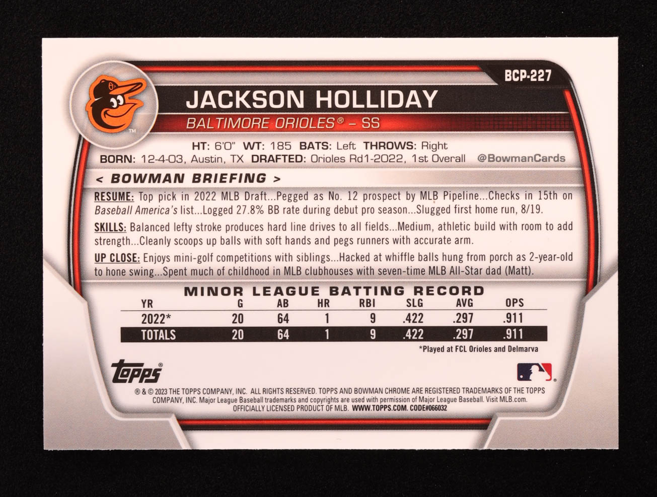 Jackson Holliday 2023 Bowman Chrome Mega Box Prospects #BCP227 RC