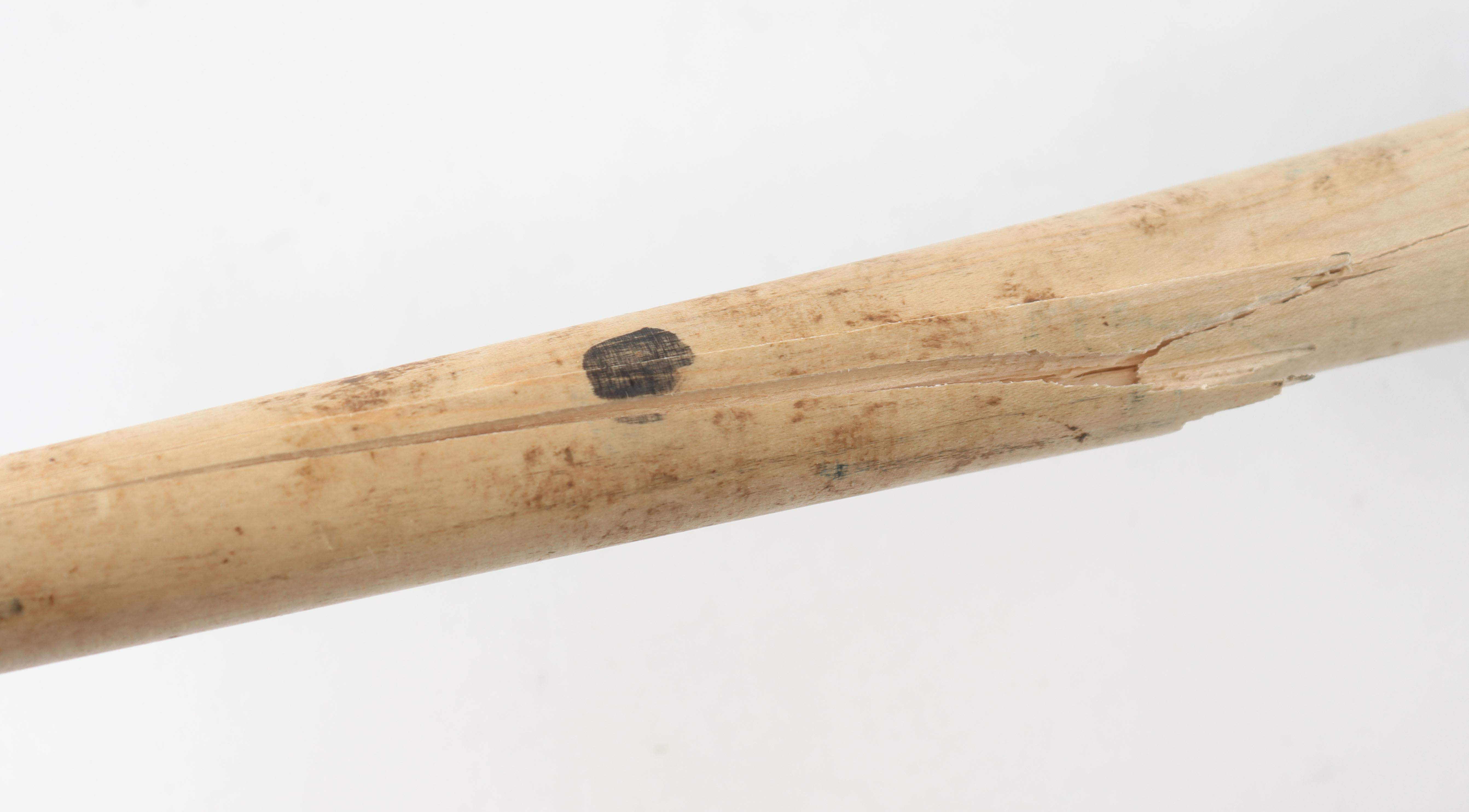 Old Hickory baseball bat. Hand-signed and inscribed Juan Gonzalez (Texas Rangers). Please note, the bat has been game-used and cracked by an unknown player.