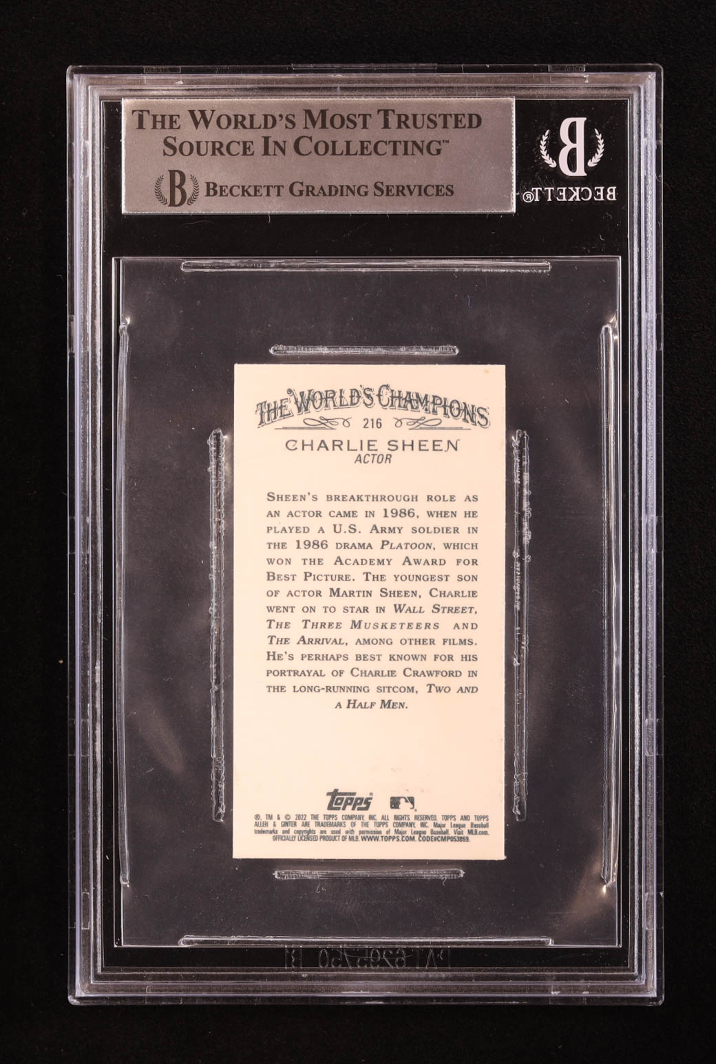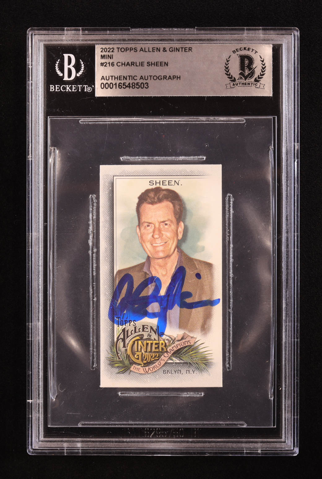 Charlie Sheen Signed 2022 Topps Allen and Ginter Mini #216 (BGS)
