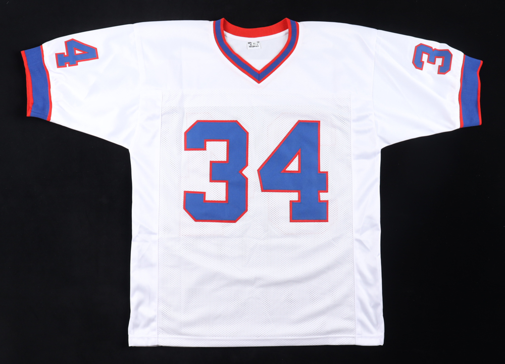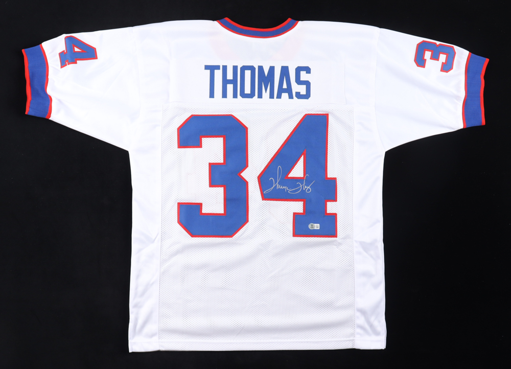 Custom jersey with everything sewn on, size XL. Hand-signed by Thurman Thomas (HOF).