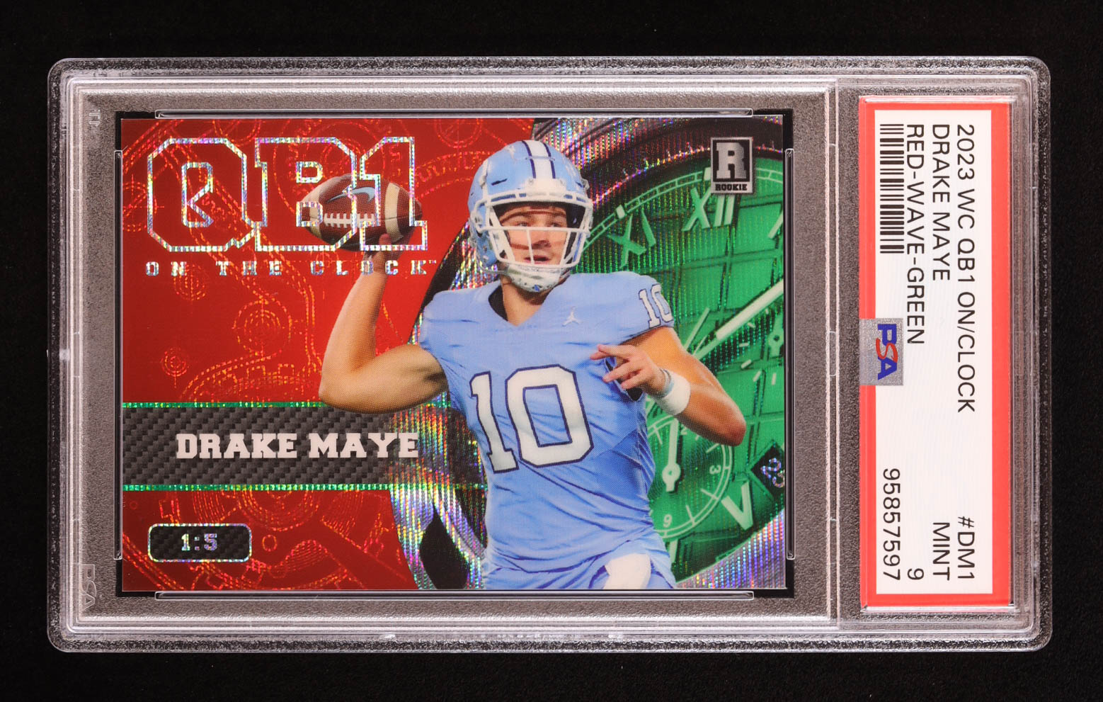 Drake Maye 2023 Wild Card Quarterback On Clock Red Wave Green #OCWDM1 RC #1/5 (PSA 9)
