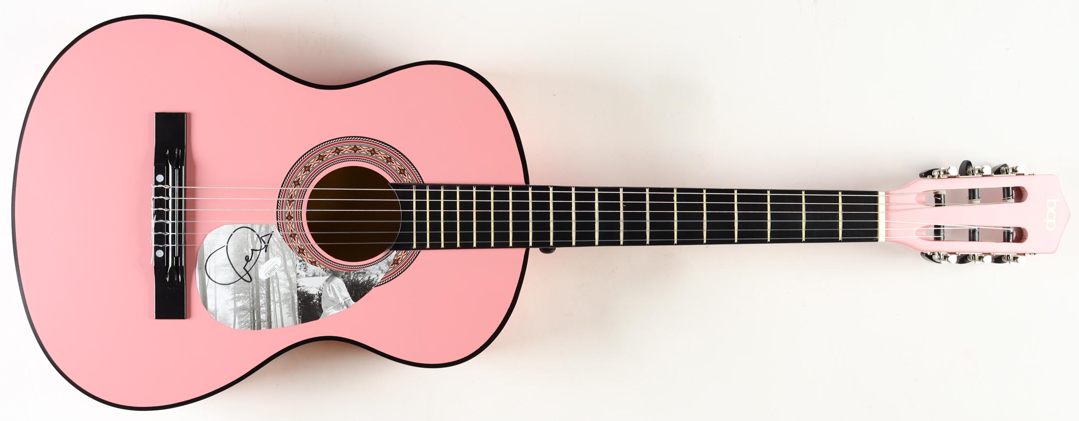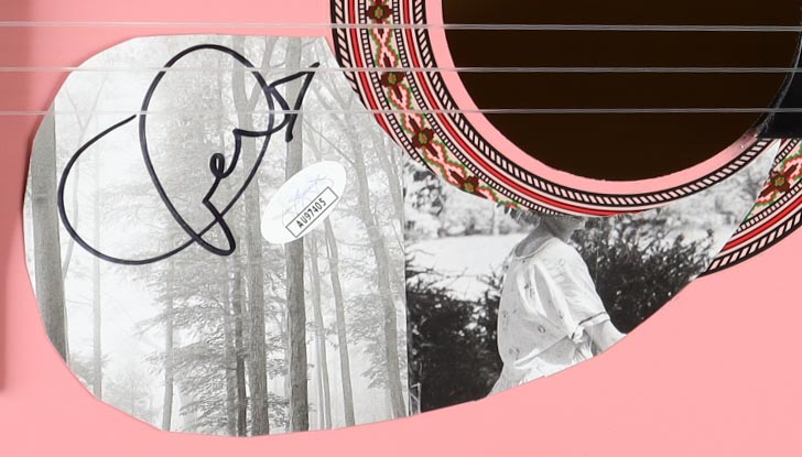 BCP Acoustic guitar measures approximately 38" in length and has been hand-signed on a CD cover that has been repurposed as a pick-guard by Taylor Swift.