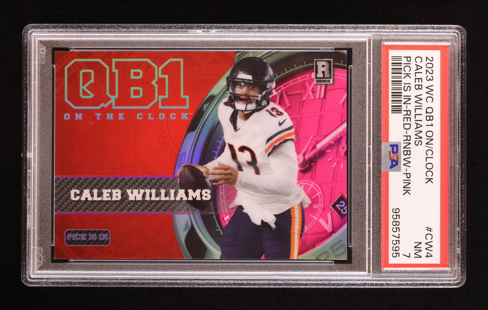 Caleb Williams 2023 Wild Card Quarterback On Clock Pick Is In Rainbow Pink #OCWCW4 RC (PSA 7)