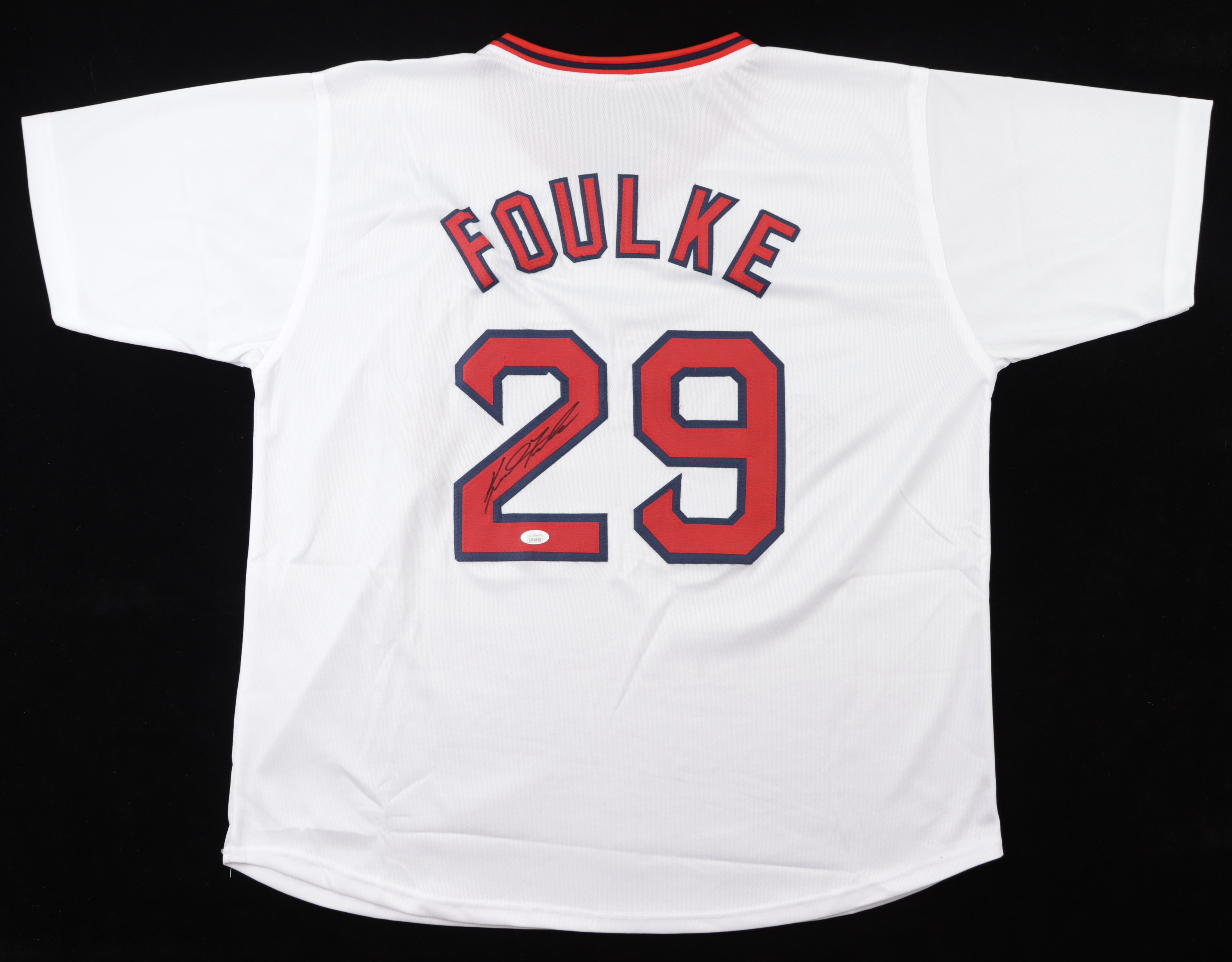 Custom jersey with everything sewn on, size XL. Hand-signed by Keith Foulke.