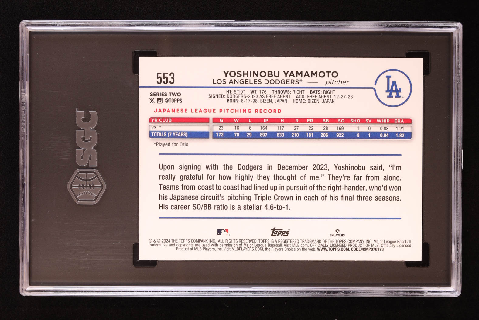 Yoshinobu Yamamoto 2024 Topps #553 RC (SGC 10)