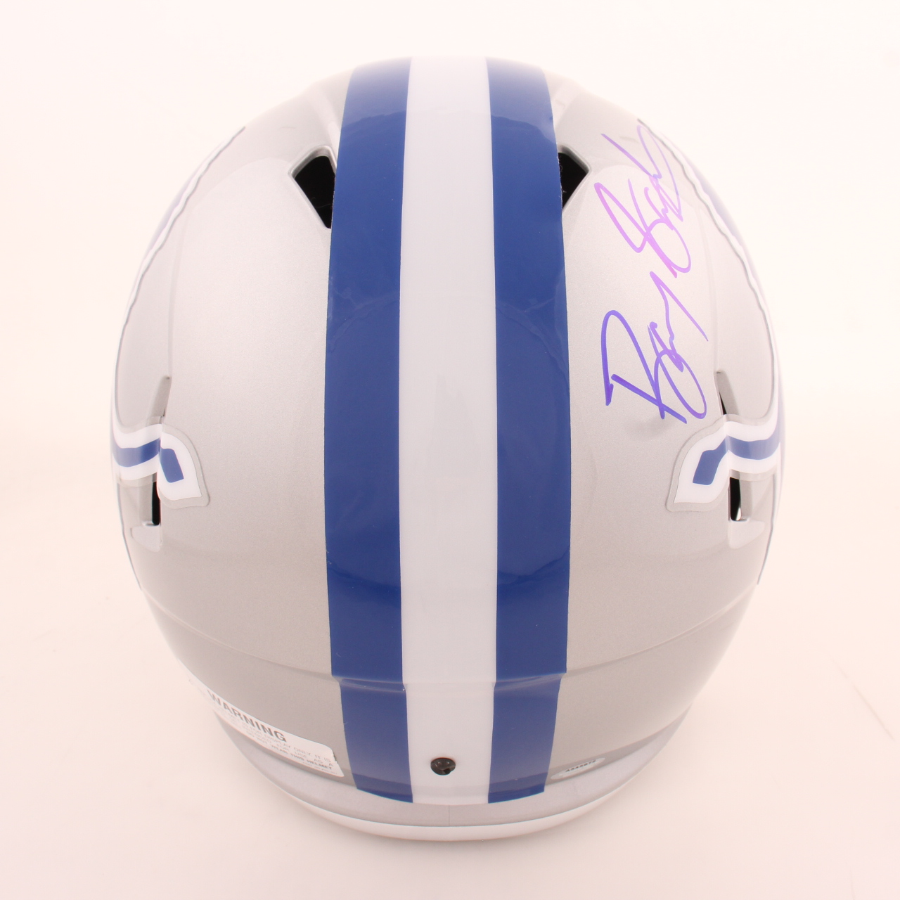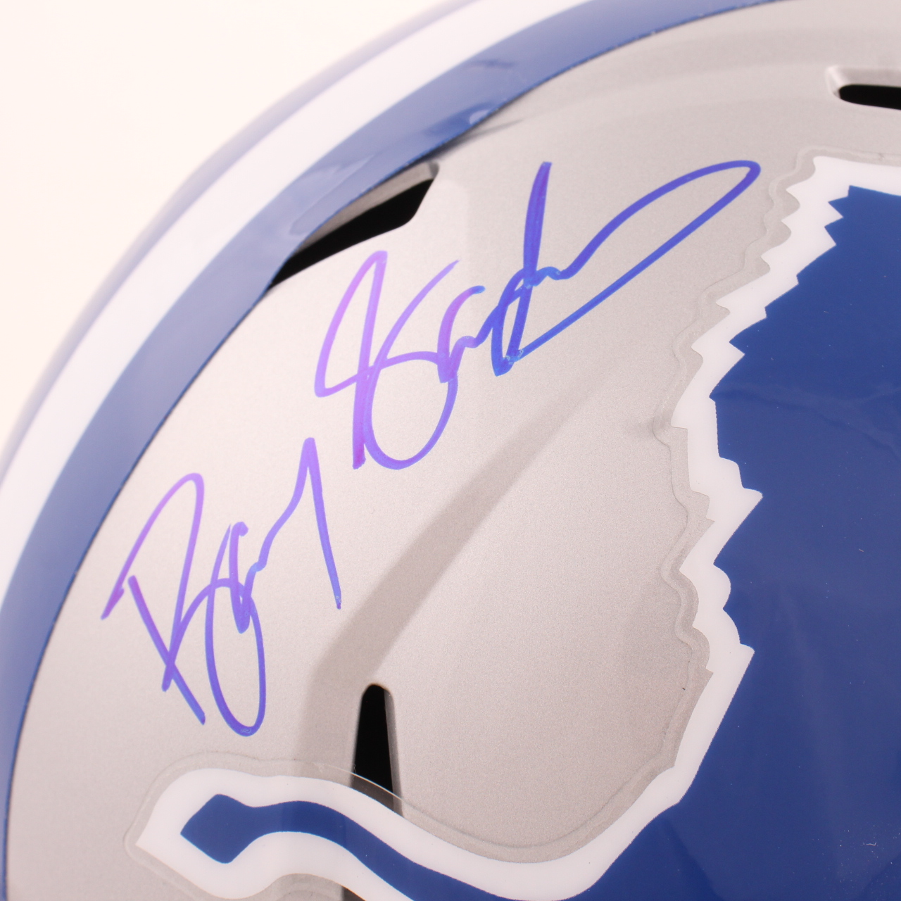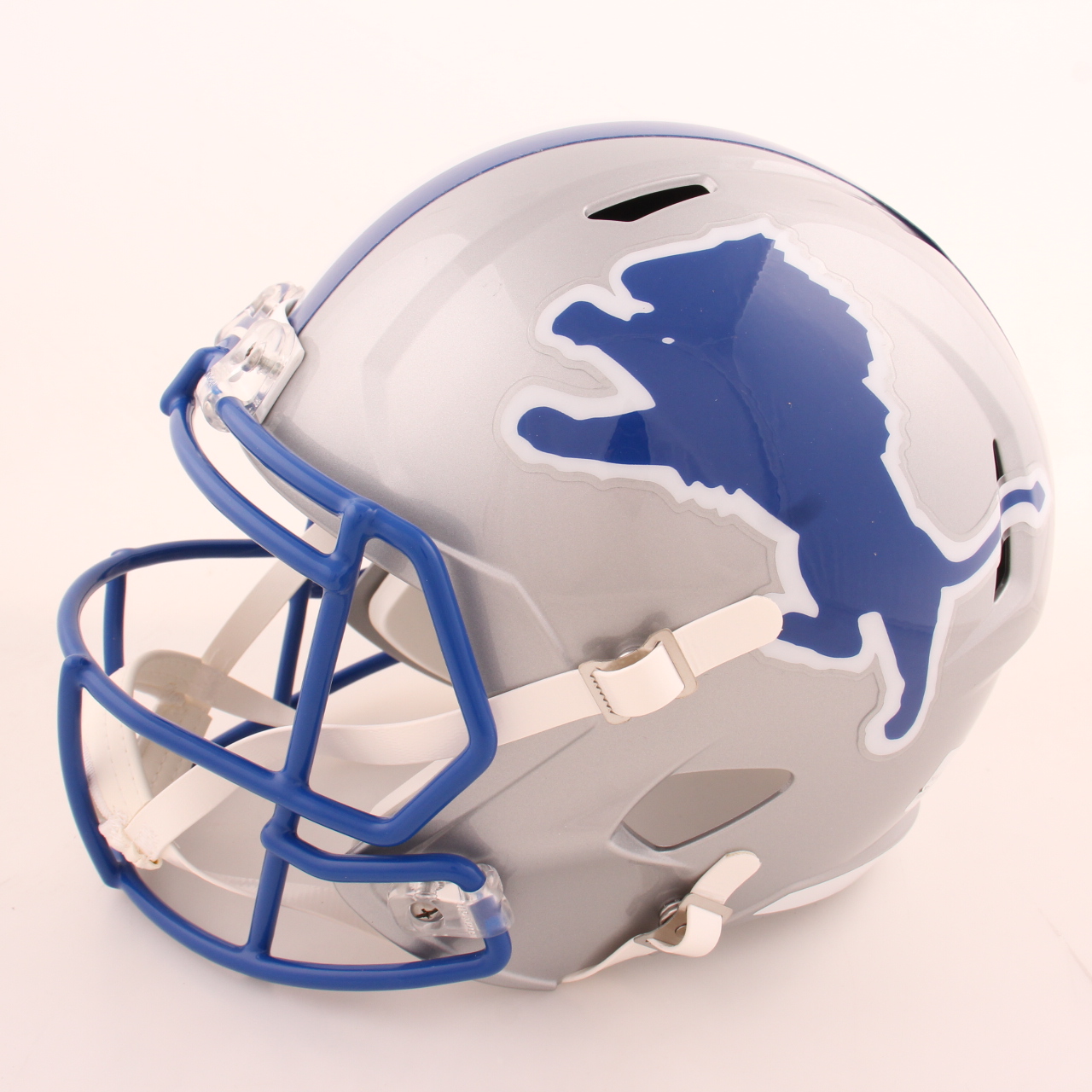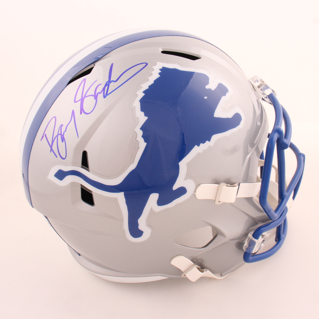 Riddell Detroit Lions full-size throwback alternate speed replica helmet. Hand-signed by Barry Sanders (HOF).