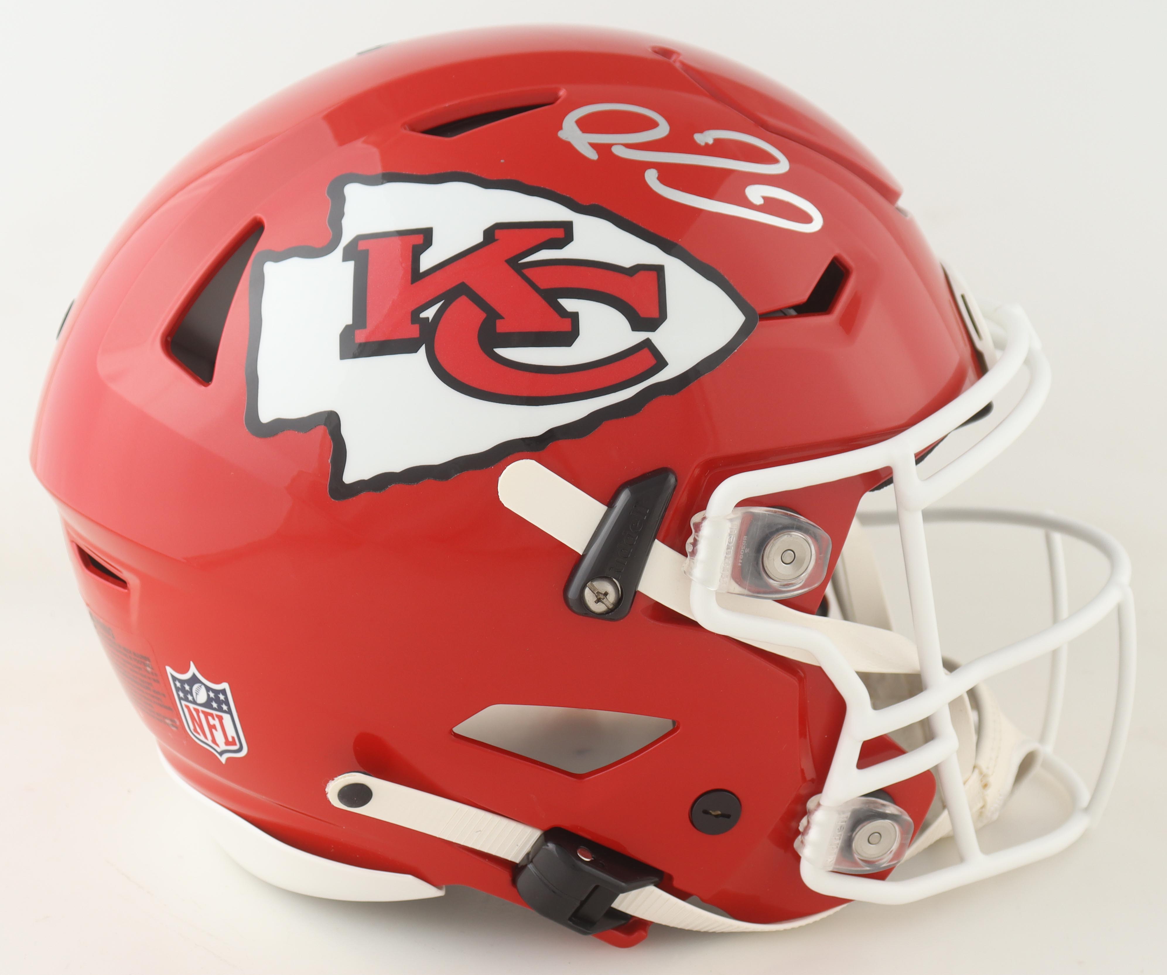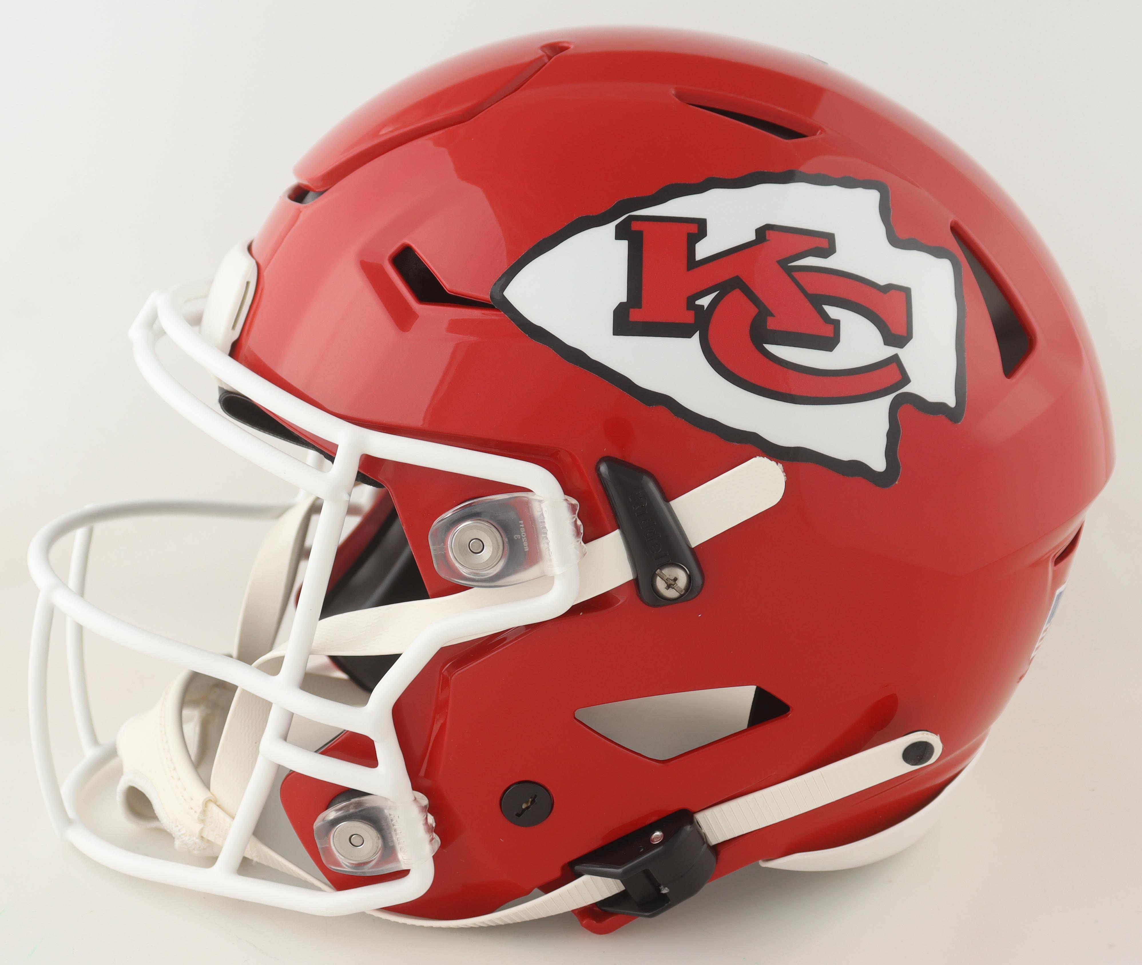 Riddell Kansas City Chiefs full-size authentic on-field speedflex helmet. Hand-signed by Patrick Mahomes II.