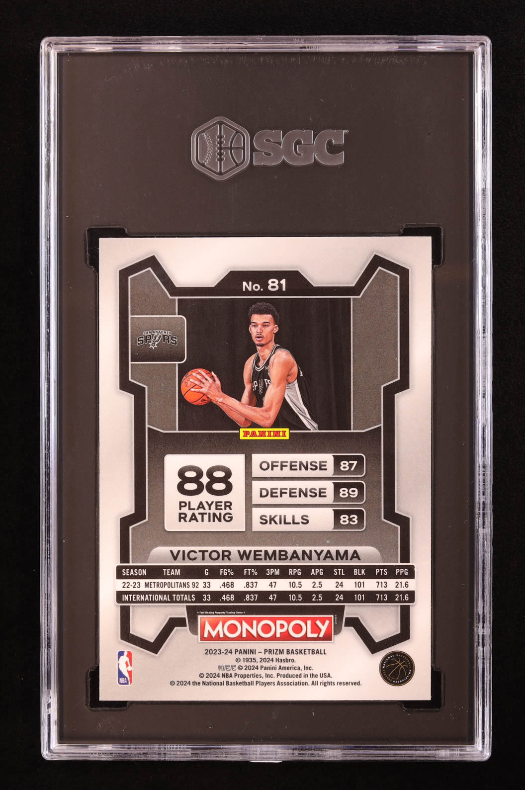 Victor Wembanyama 2023-24 Panini Prizm Monopoly #81 RC (SGC 9.5)