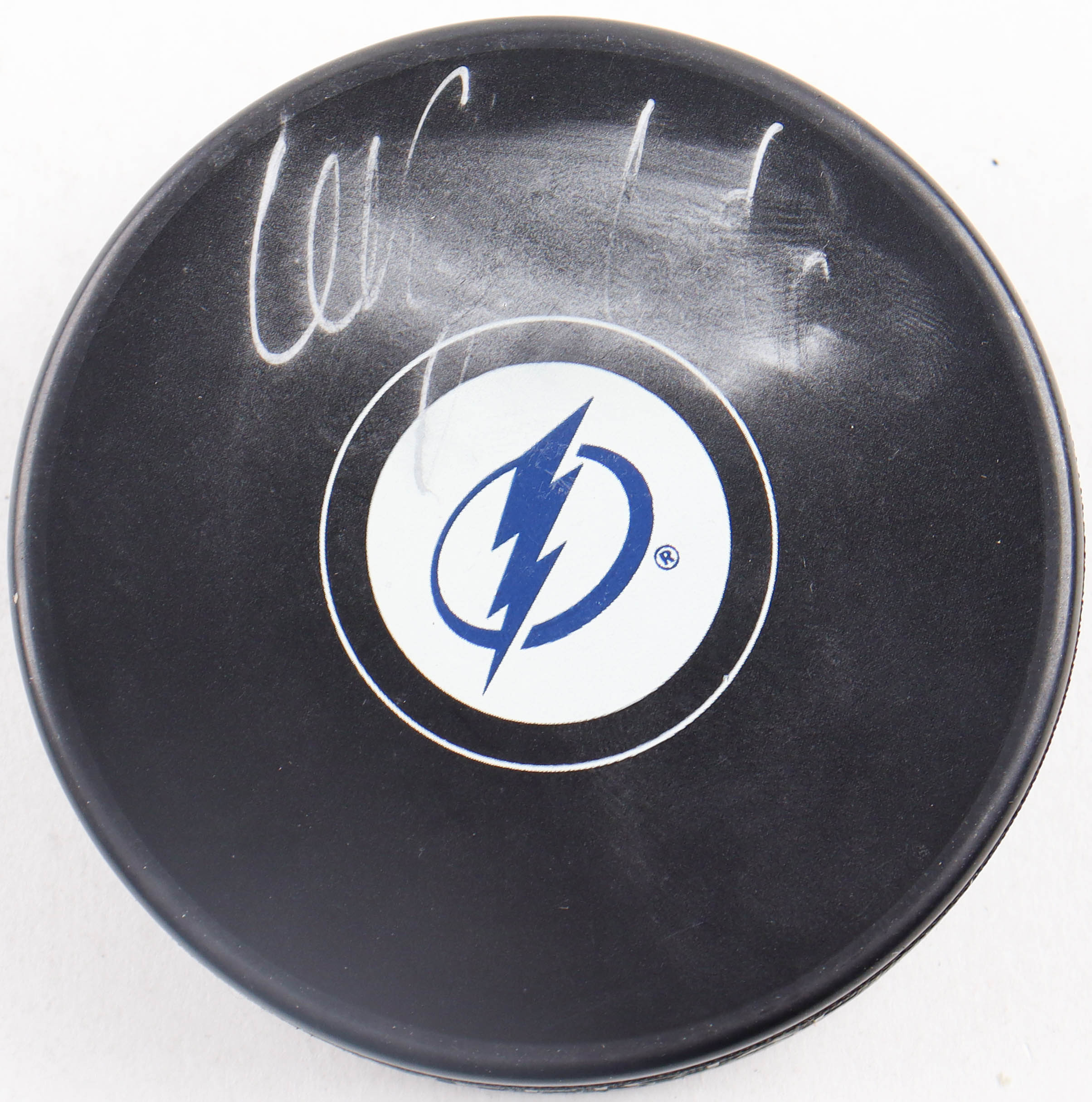 Nikita Kucherov Signed Lightning Logo Hockey Puck (Fanatics)