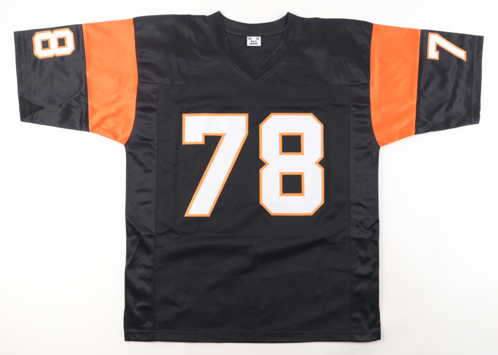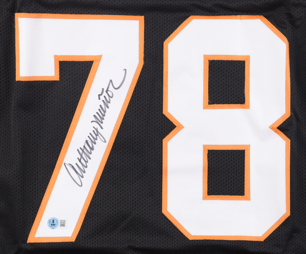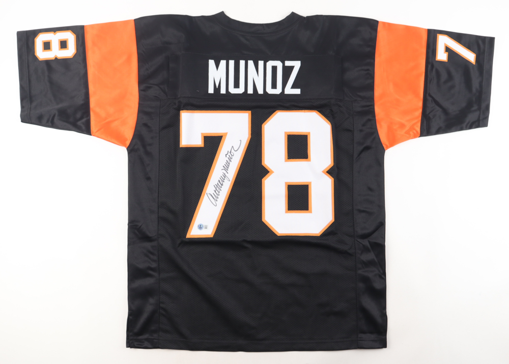 Custom jersey with everything sewn on, size XL. Hand-signed by Anthony Munoz (HOF).