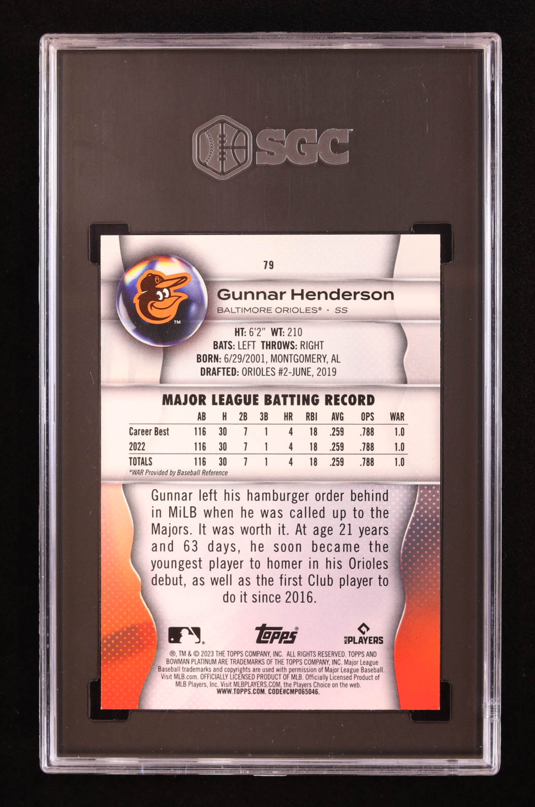 Gunnar Henderson 2023 Bowman Platinum #79 RC (SGC 9.5)