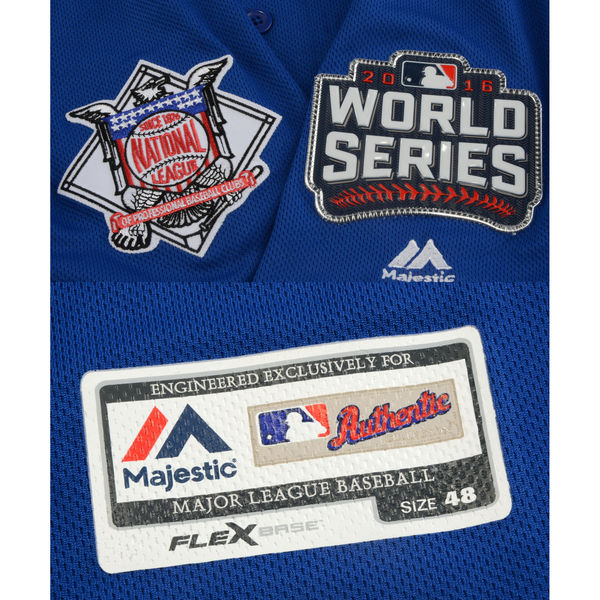 Majestic On-Field Style Jersey. Everything sewn on, size 48. Hand-signed in silver paint pen by Kris Bryant.