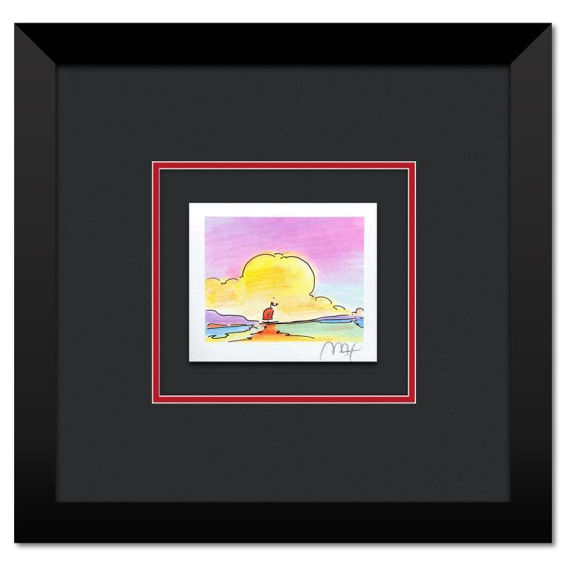 "Sailboat on the Horizon" is a limited edition lithograph on paper by Peter Max, numbered and hand signed by the artist. This piece comes framed. Includes Certificate of Authenticity from Peter Max Studios. Measures approx. 13" x 13" (frame), 3" x 3" (image).