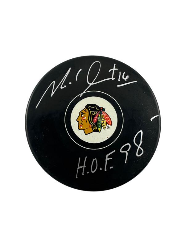 Michel Goulet Signed Blackhawks Hockey Puck Inscribed "HOF 98" (Beckett)