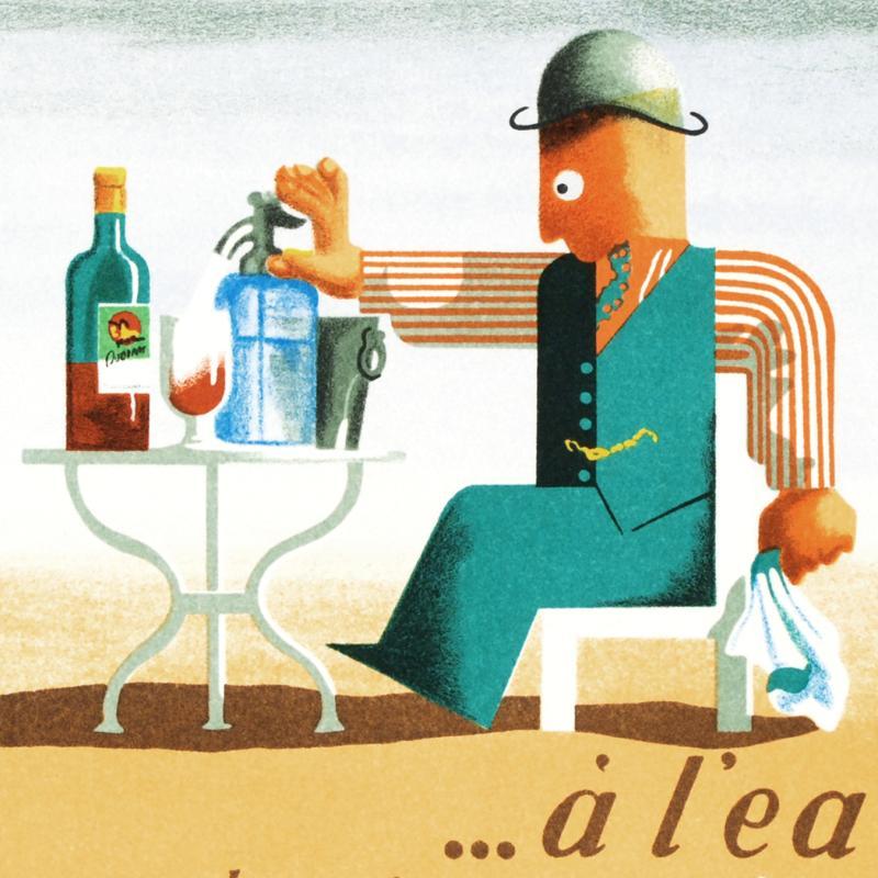 "Dubonnet A L'eau" is a hand pulled lithograph on paper by the RE Society, image originally by A.M. Cassandra that measures approximately 14" x 10.5" (with border), 13" x 9.5" (image).