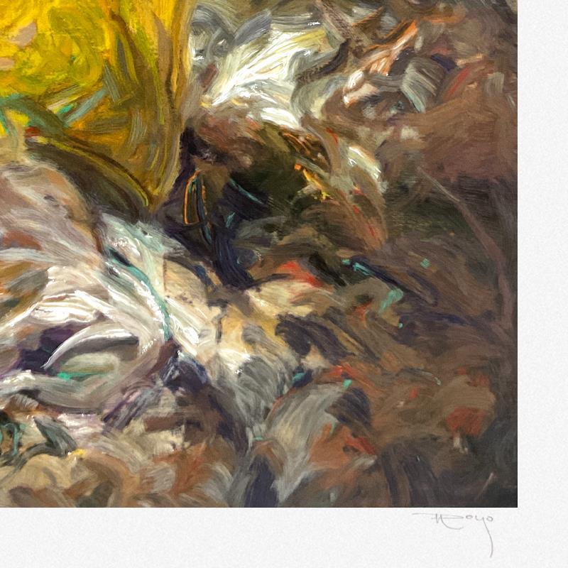 "Cala En Mallorca" is a limited edition printer's proof serigraph on paper by Royo, numbered and hand signed by the artist. Includes Letter of Authenticity. Measures approx. 39.5" x 39" (border), 34" x 34" (image).