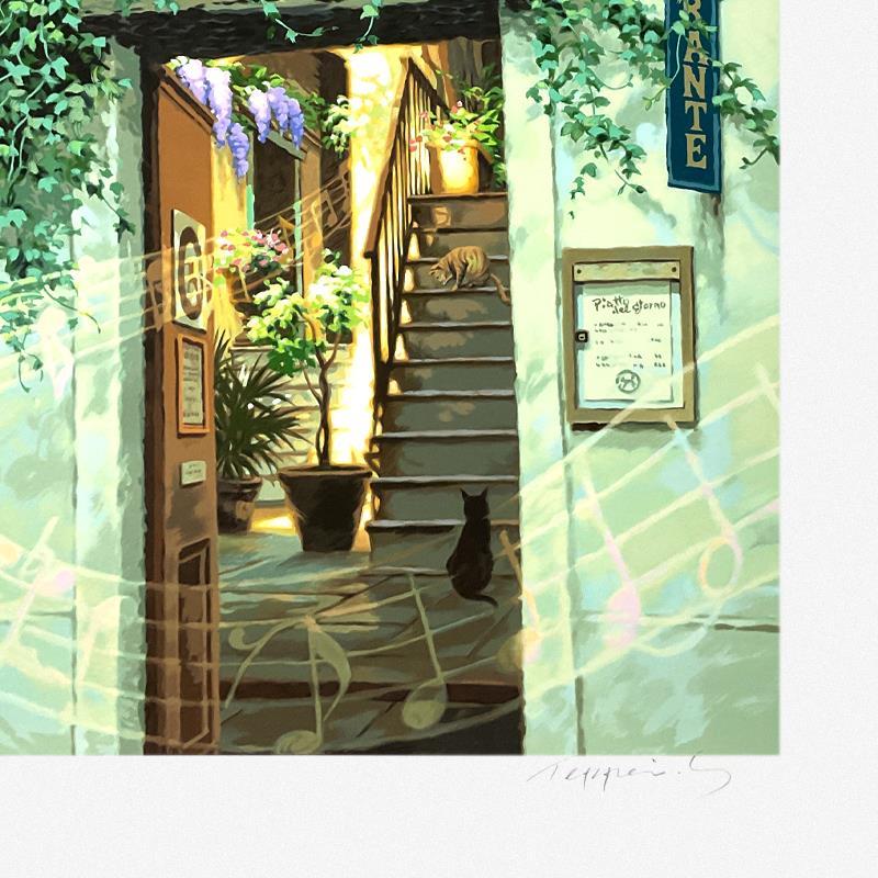 "Glicine" is a limited edition printers proof serigraph on paper by Teppei Sasakura, numbered and hand signed by the artist. Includes Letter of Authenticity. Measures approx. 33" x 24" (border), 28" x 20" (image).