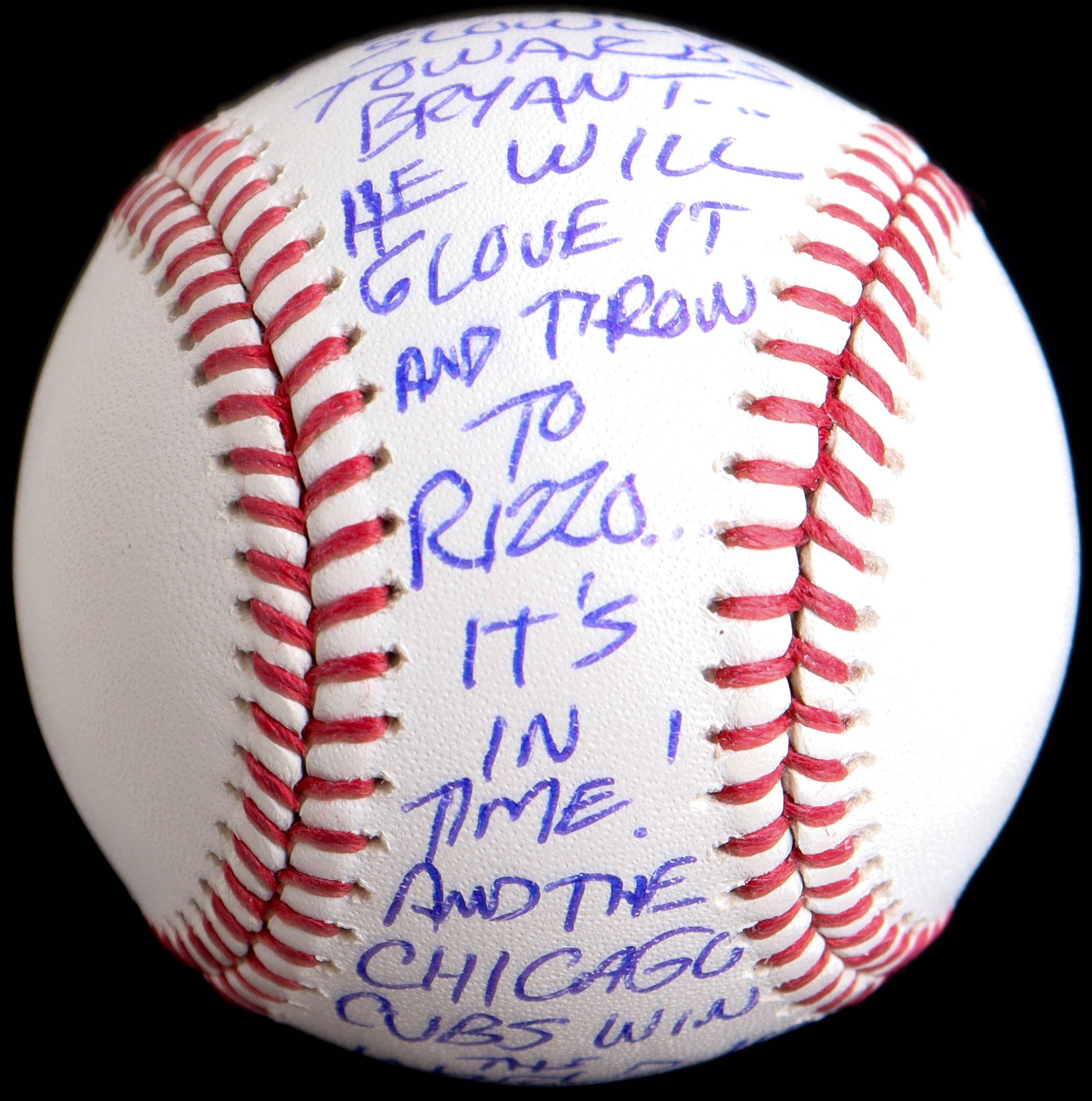 Pat Hughes Signed OML Baseball with Cubs World Series Win Play-By-Play Inscription (JSA)
