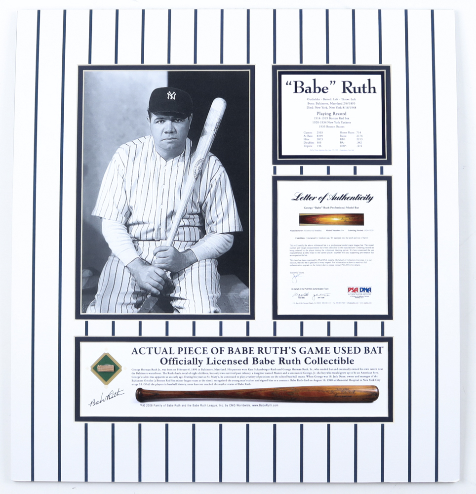 Babe Ruth Yankees Custom Matted Game-Used Baseball Bat Piece Display (PSA)