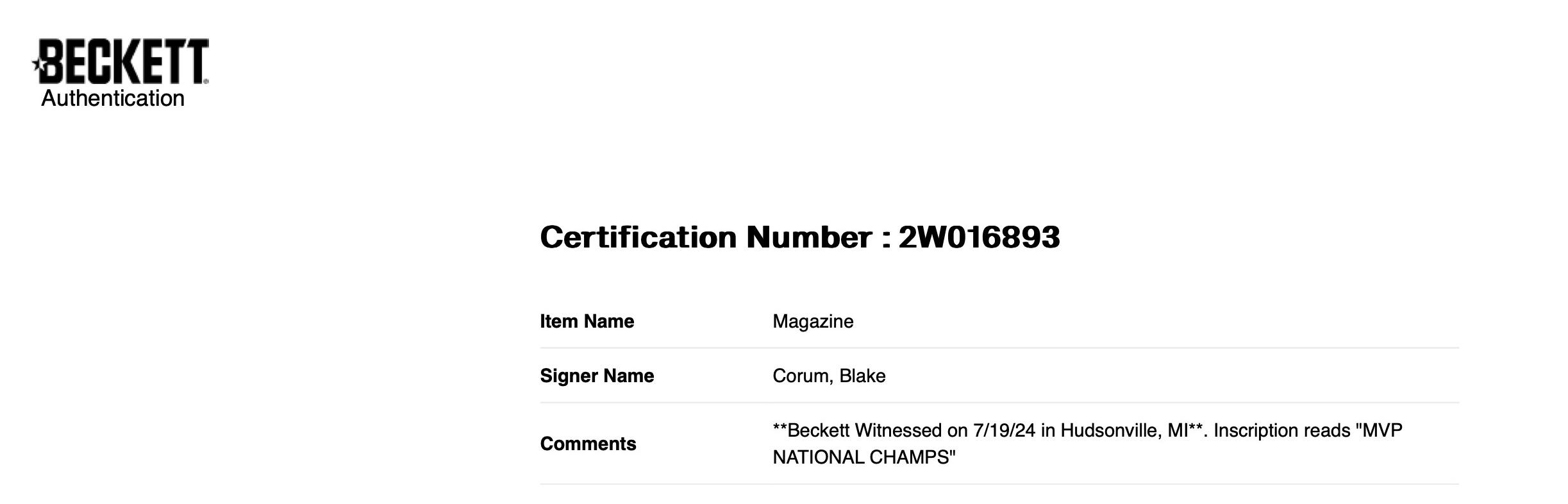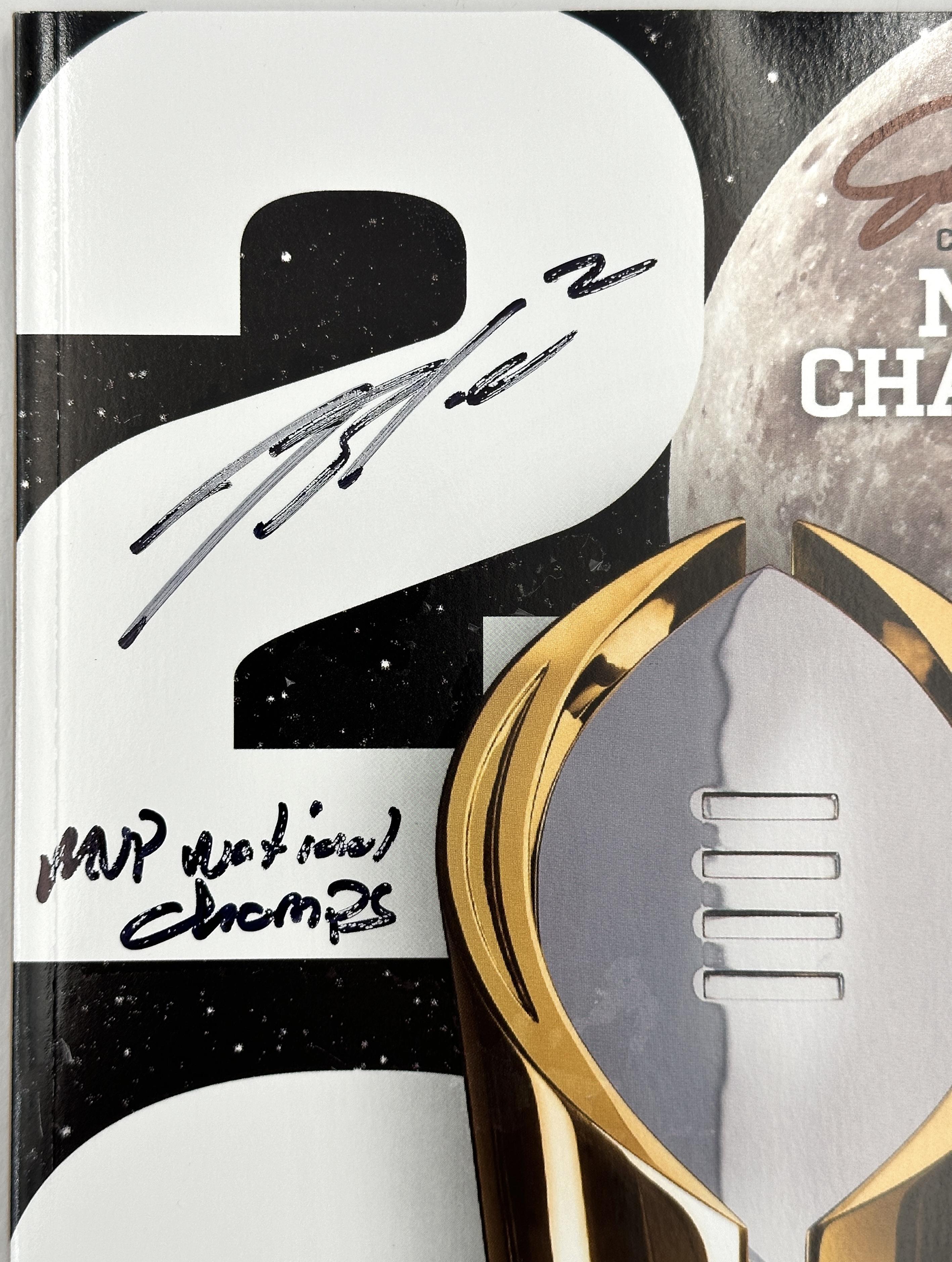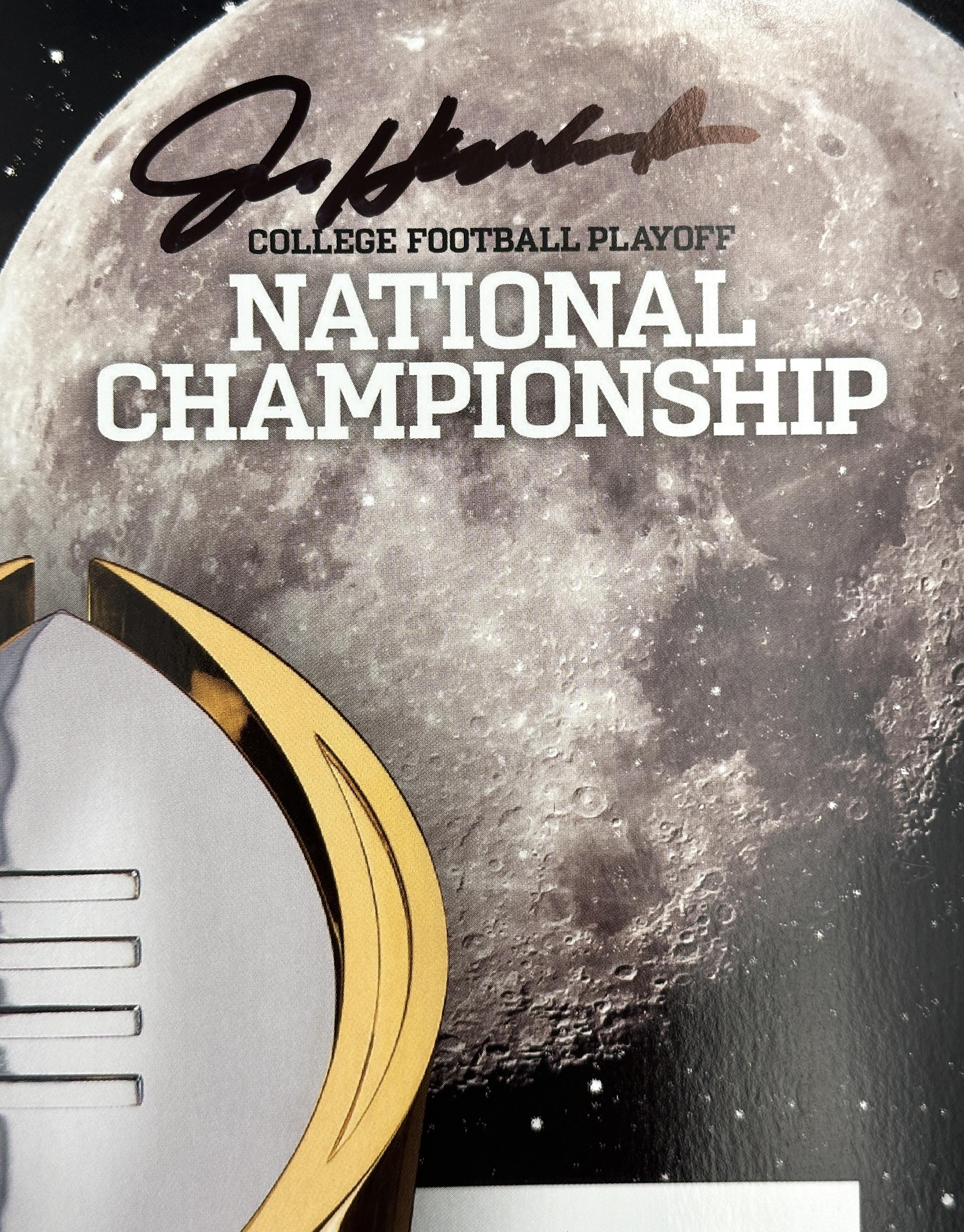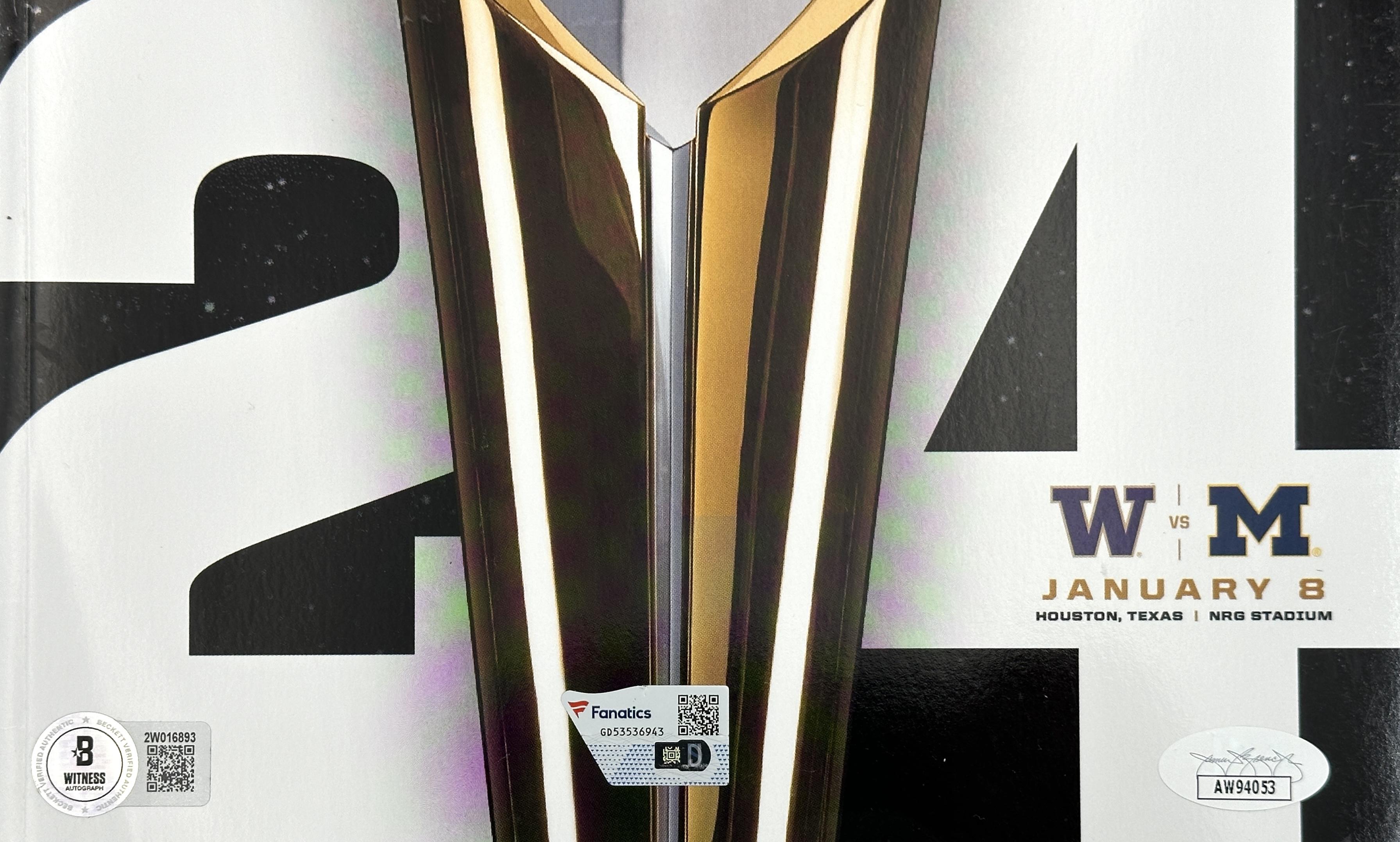 2024 CFP National Championship Game Program has been hand-signed and inscribed by Jim Harbaugh and Blake Corum.