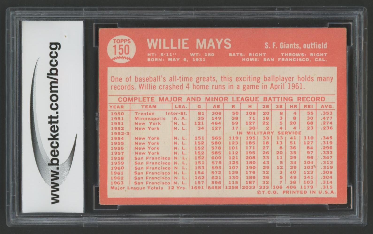 Willie Mays 1964 Topps #150 (BCCG 8)