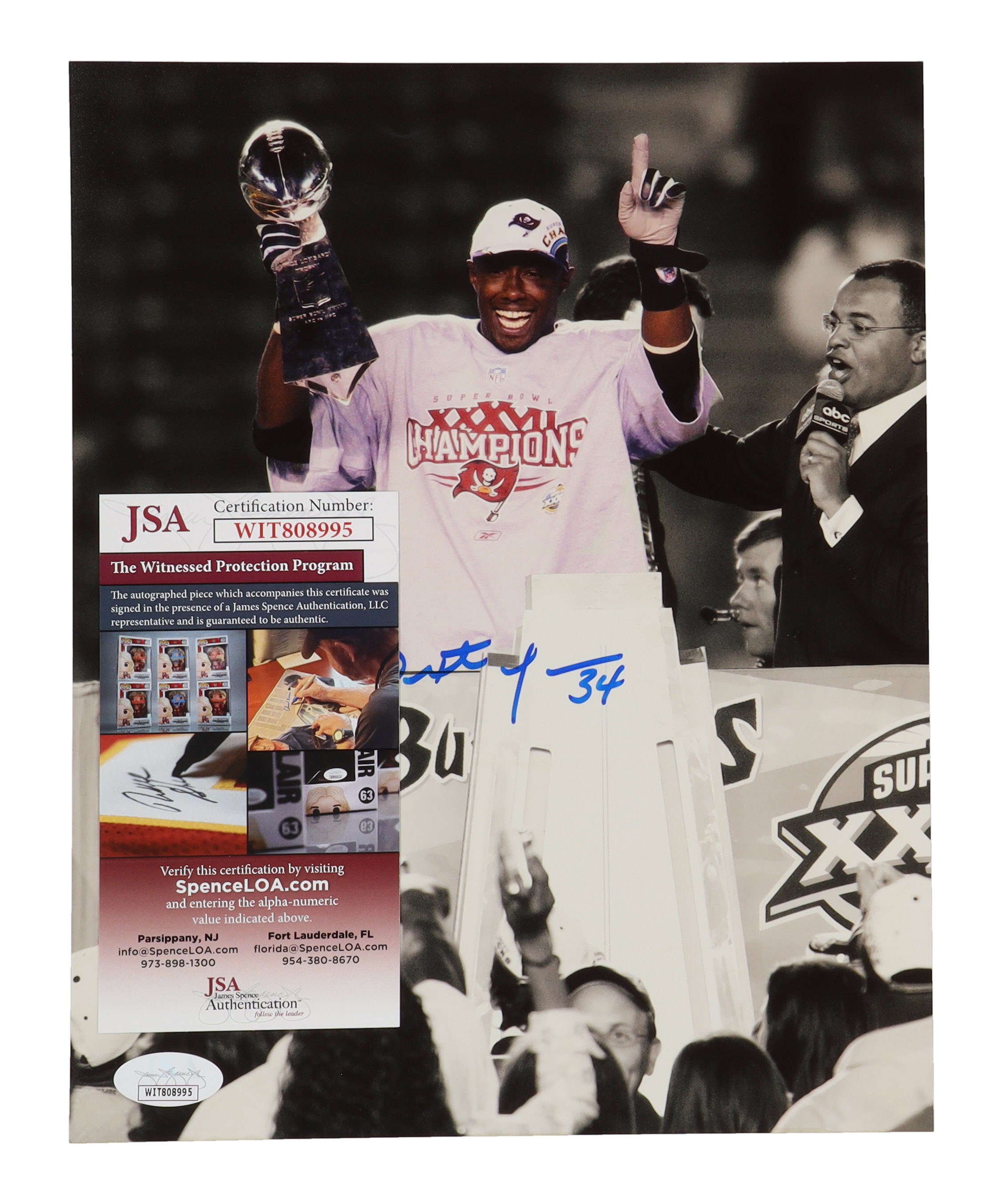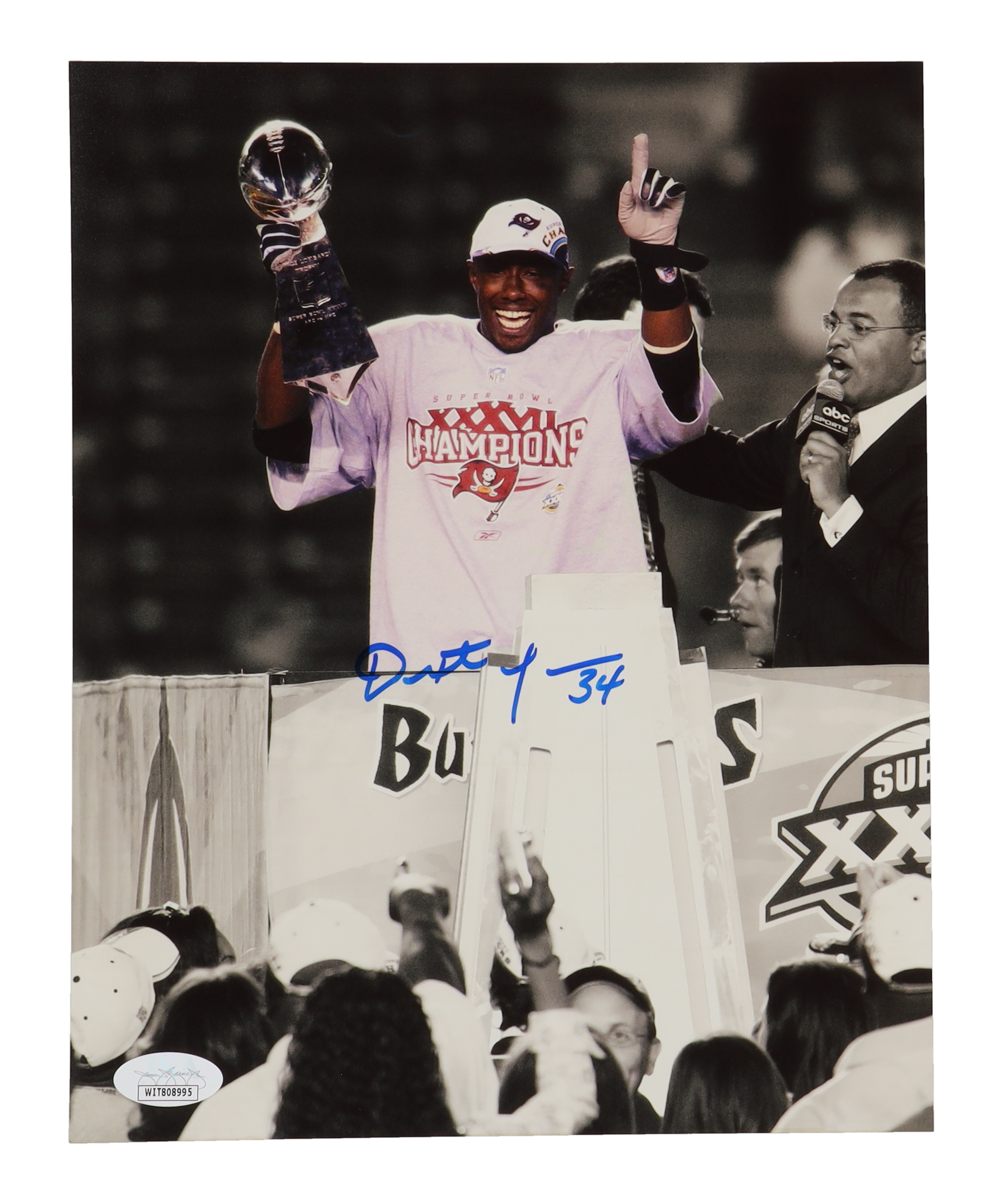 Photo measures 8" x 10" in size and has been hand-signed by Dexter Jackson (Tampa Bay Buccaneers).