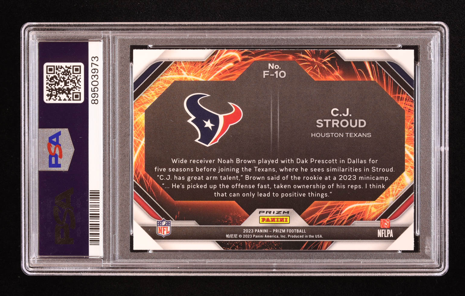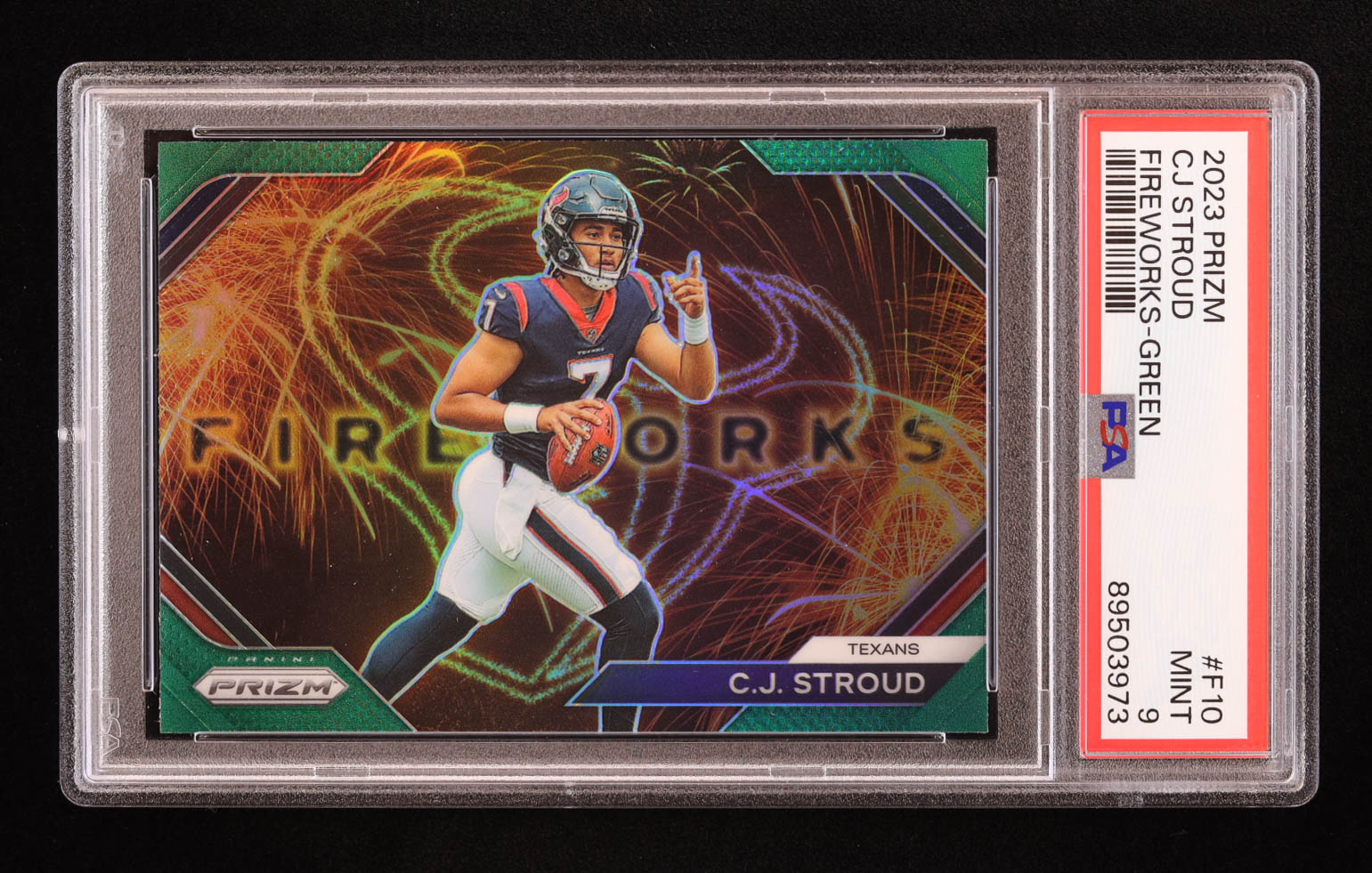 CJ Stroud 2023 Panini Prizm Fireworks Prizms Green #10 RC (PSA 9)