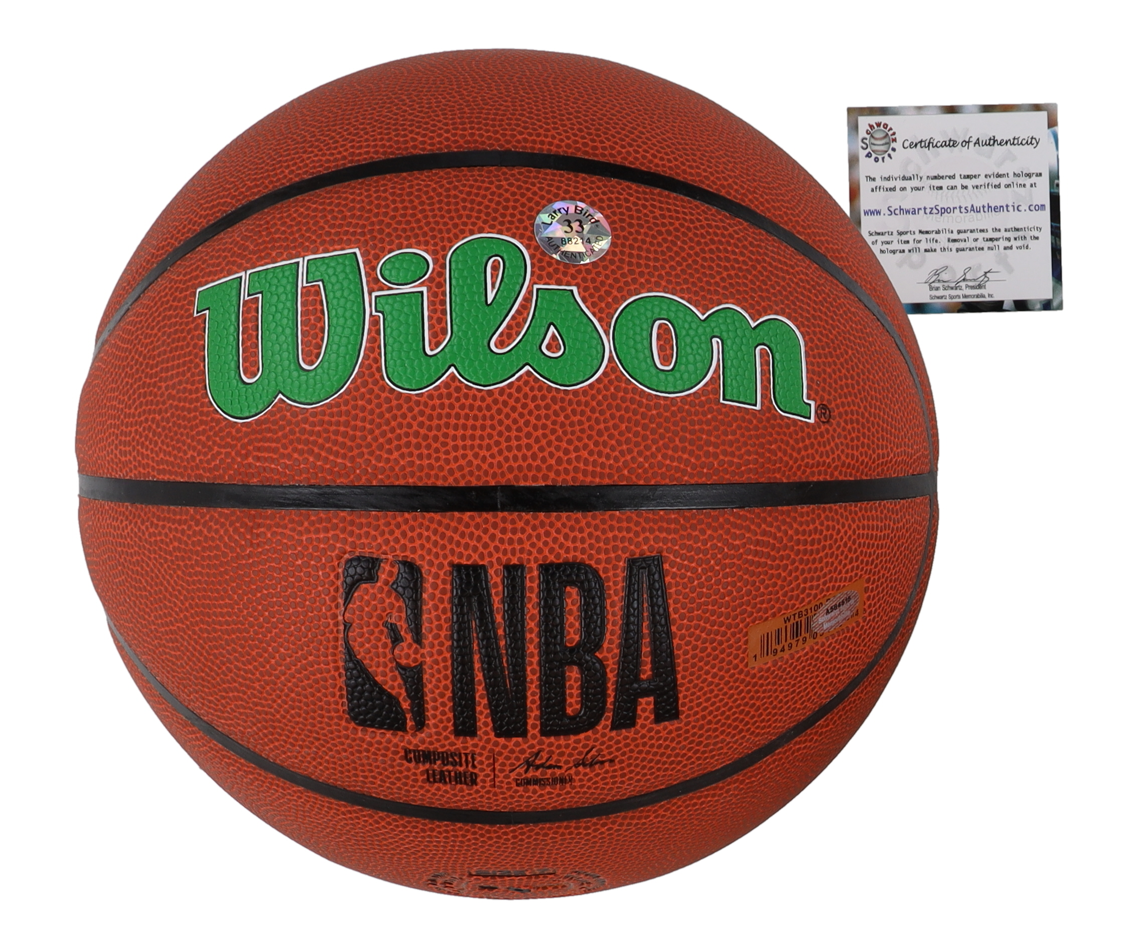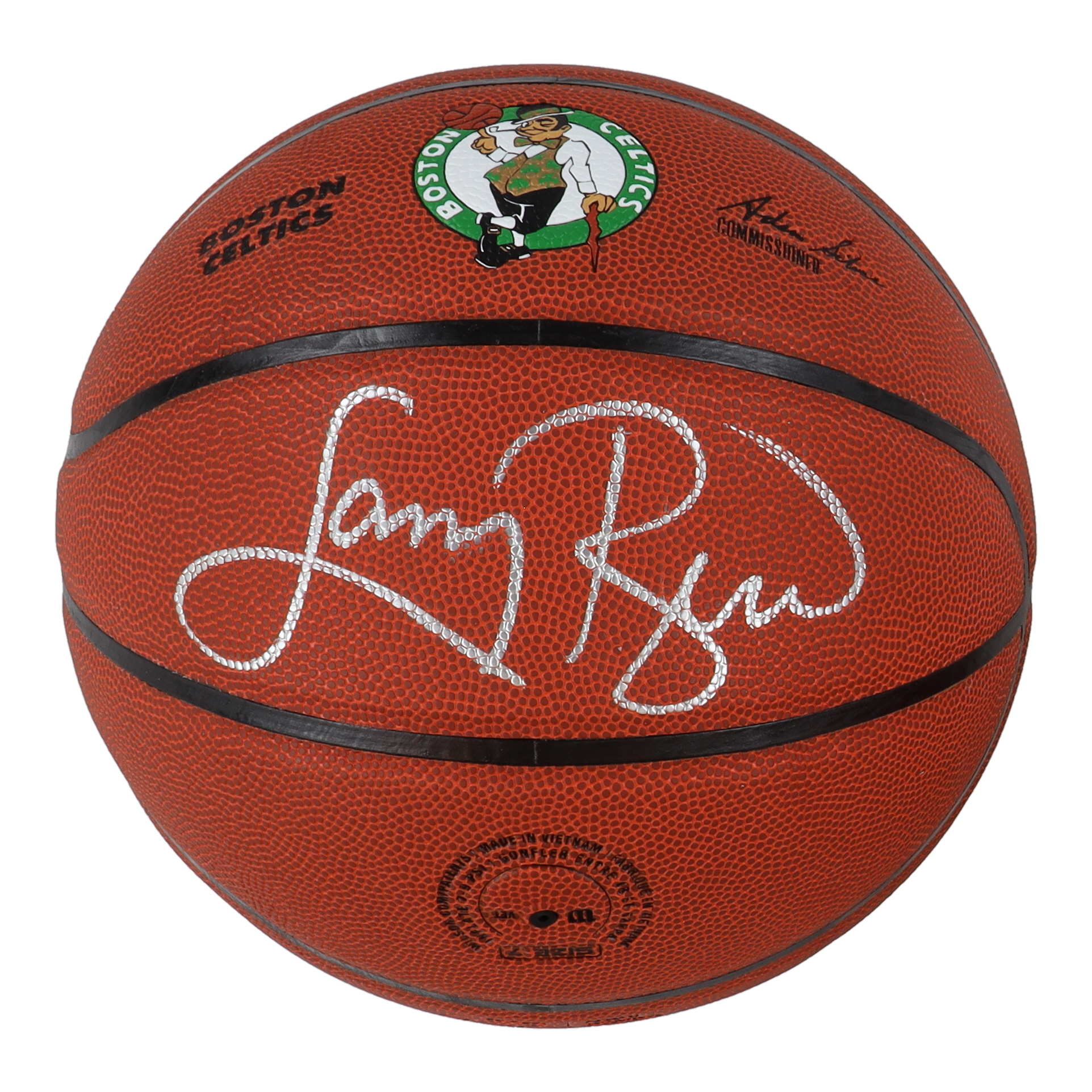 Wilson Boston Celtics Logo NBA basketball has been hand-signed by Larry Bird (Boston Celtics, HOF).