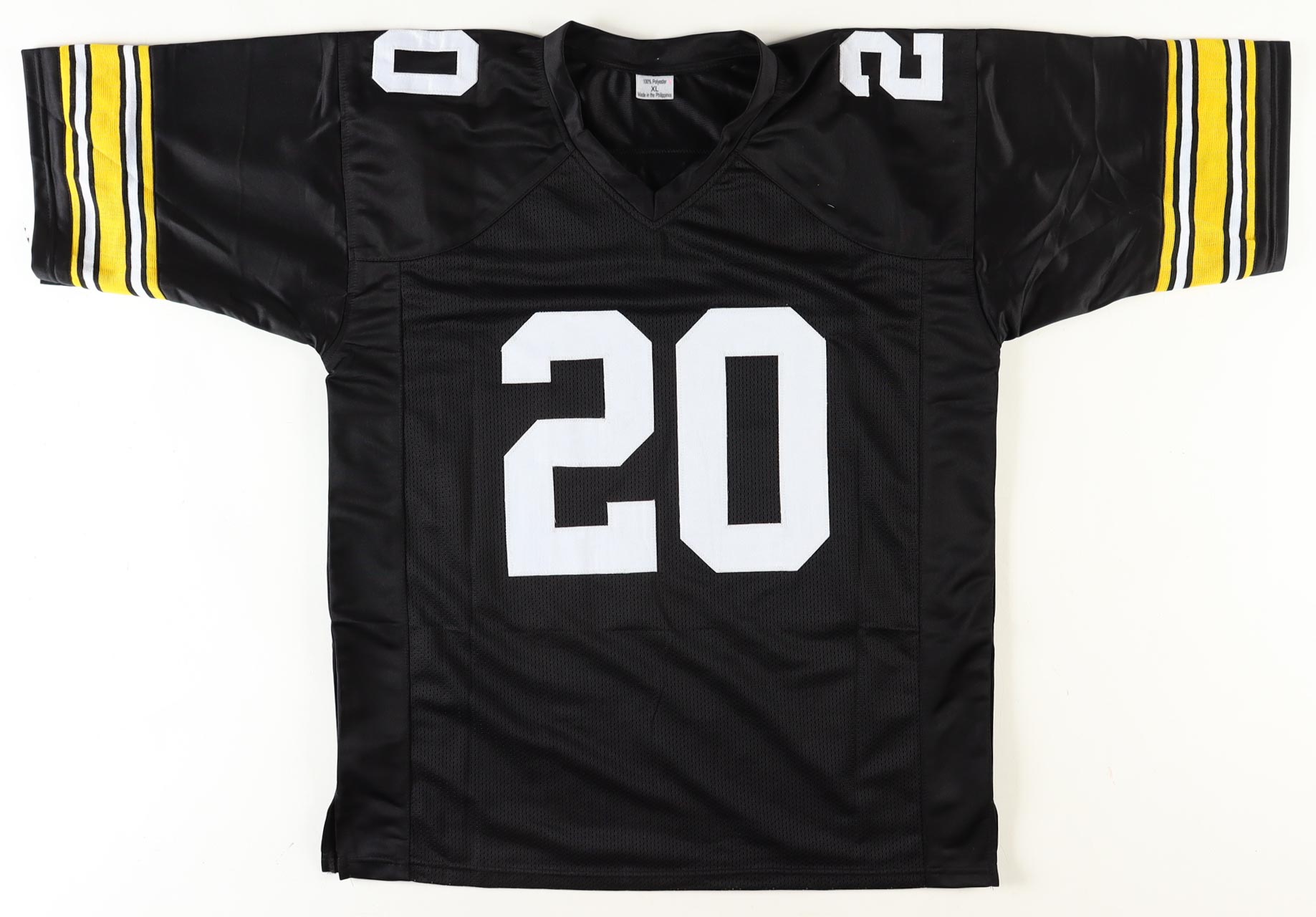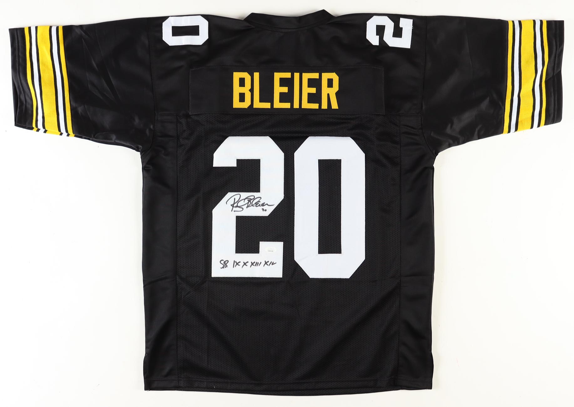Custom jersey. Everything sewn on, size XL. Hand-signed and inscribed by Rocky Bleier (Pittsburgh Steelers).