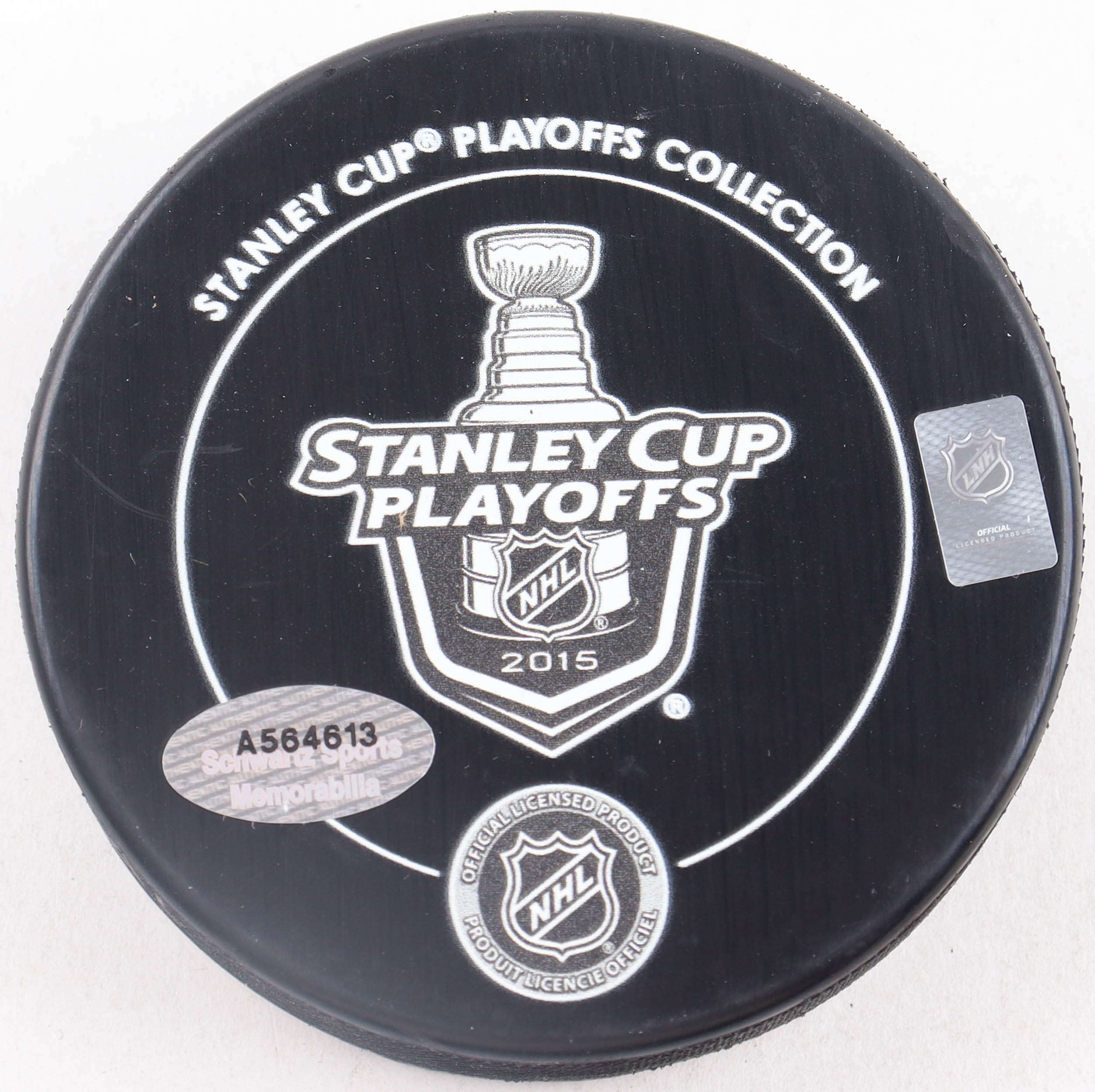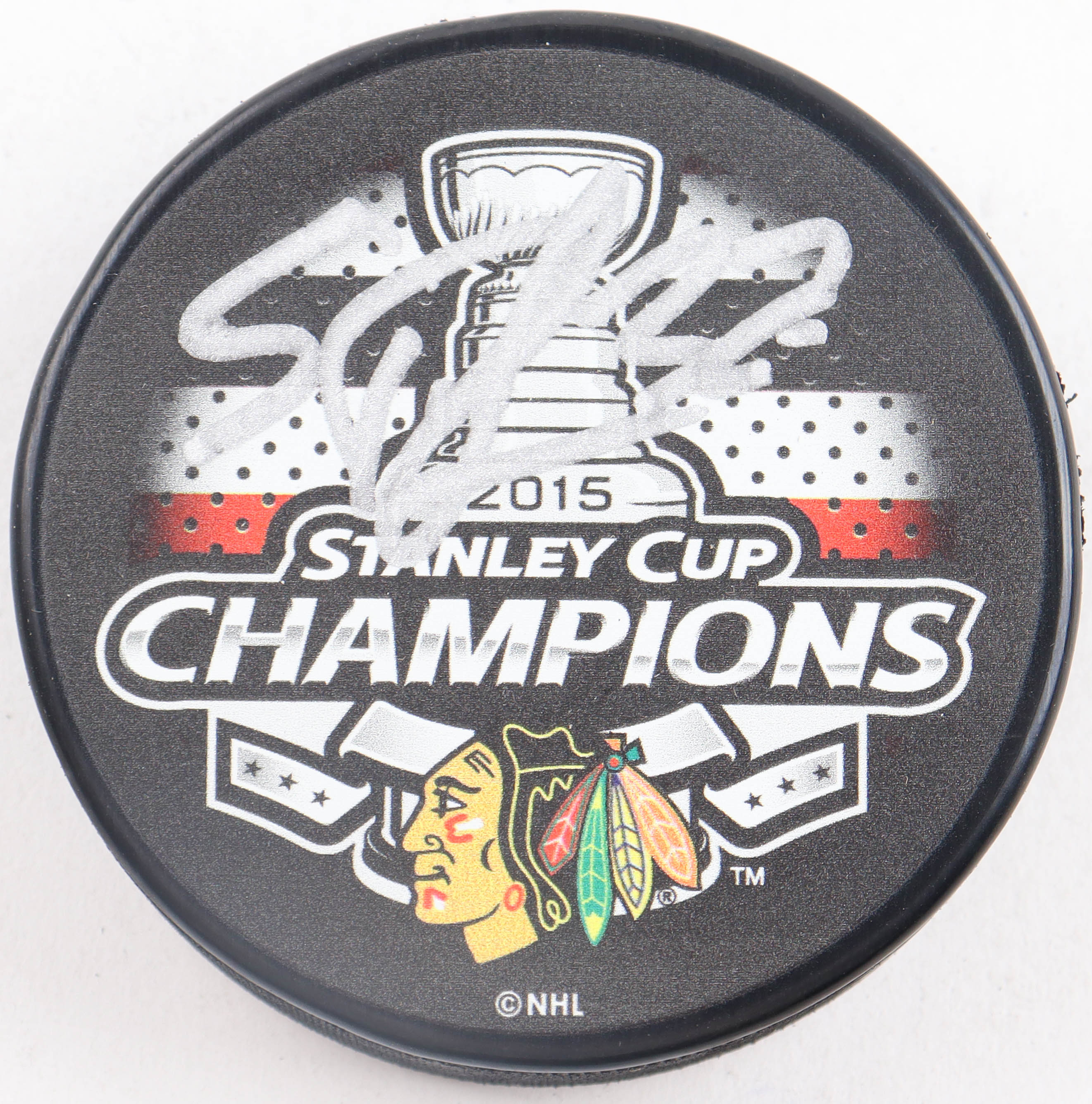 Chicago Blackhawks 2015 Stanley Cup Champions Logo Hockey Puck. Hand-signed by Scott Darling.