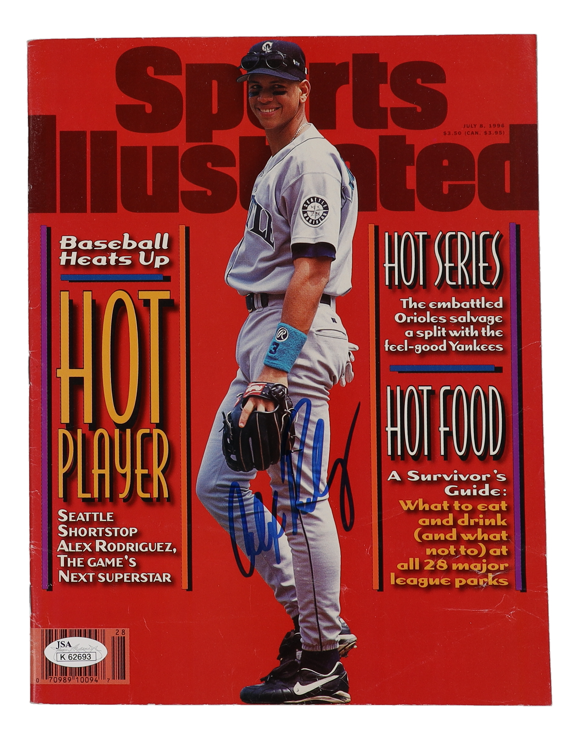 July 8, 1996 magazine has been hand-signed by Alex Rodriguez (Seattle Mariners).