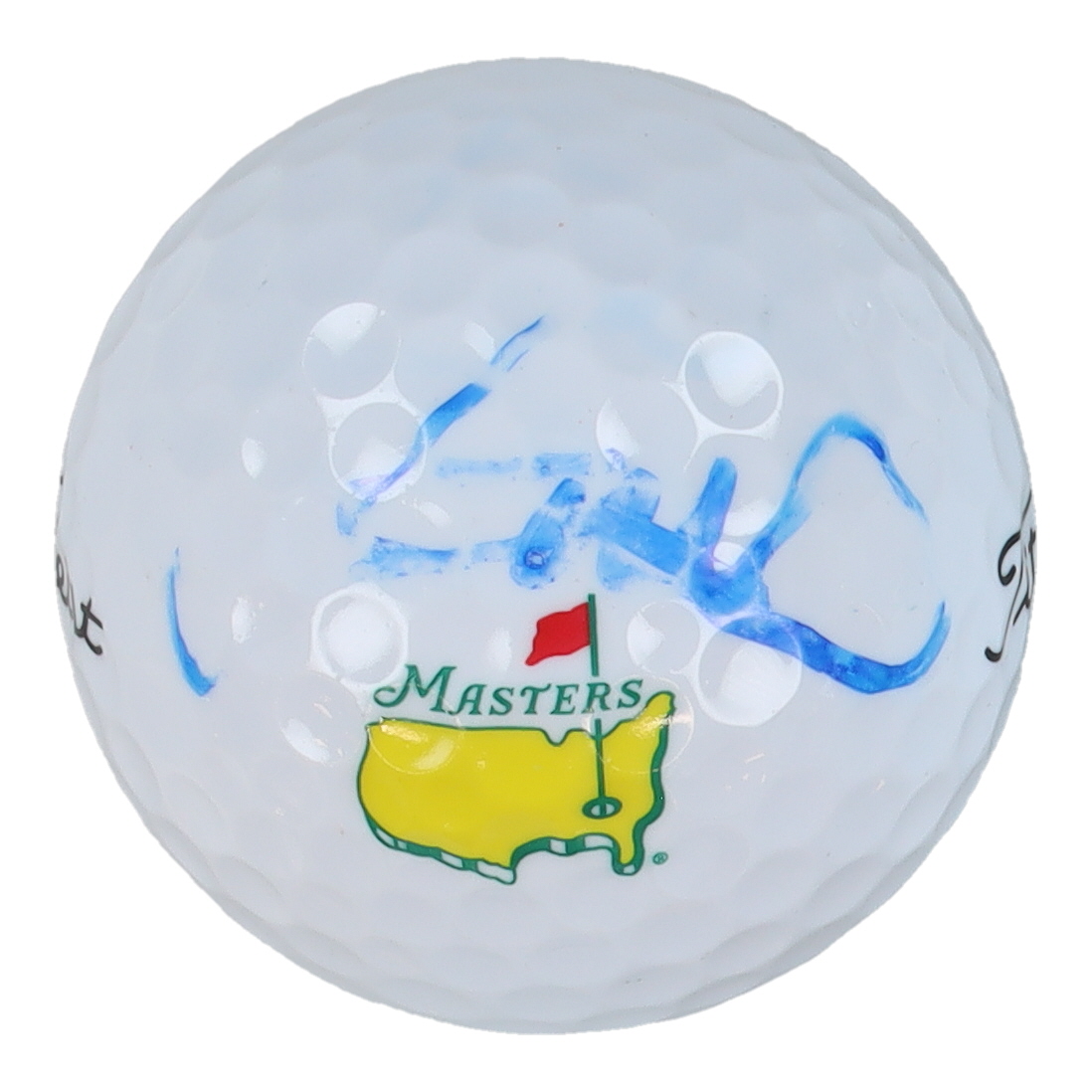 Titleist Masters logo golf ball has been hand-signed by Jordan Spieth. Please note, the signature has smudged.
