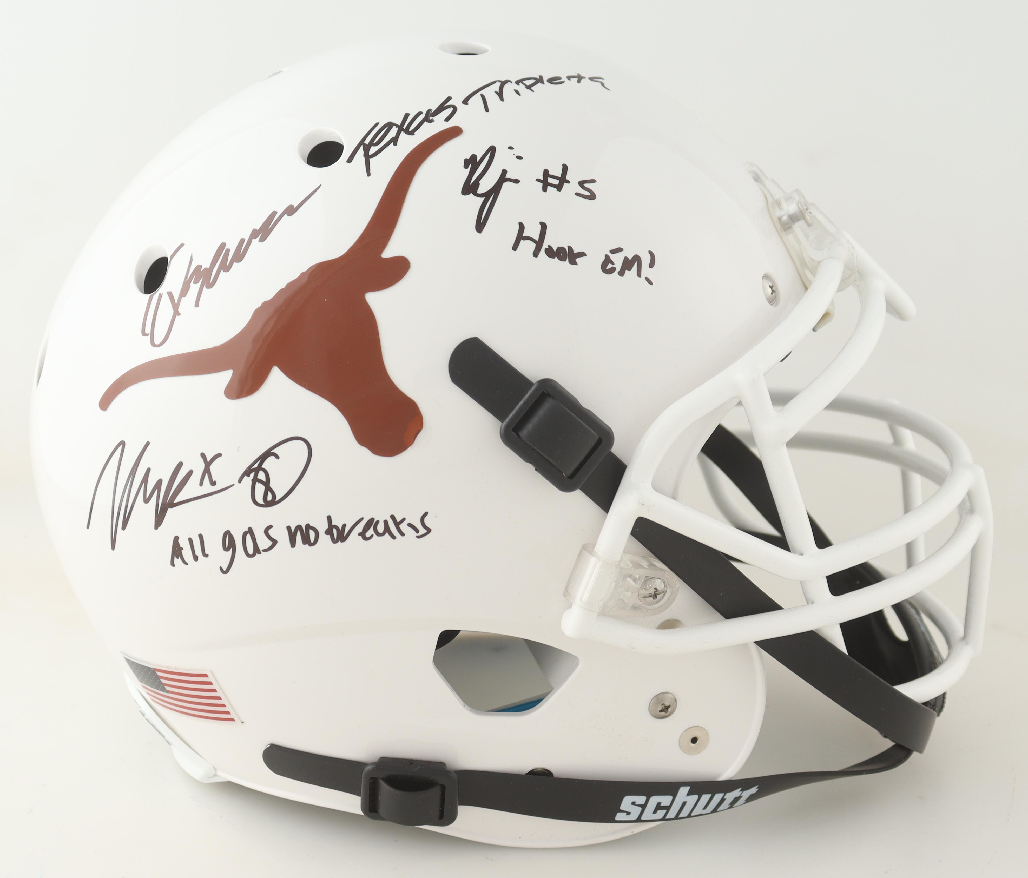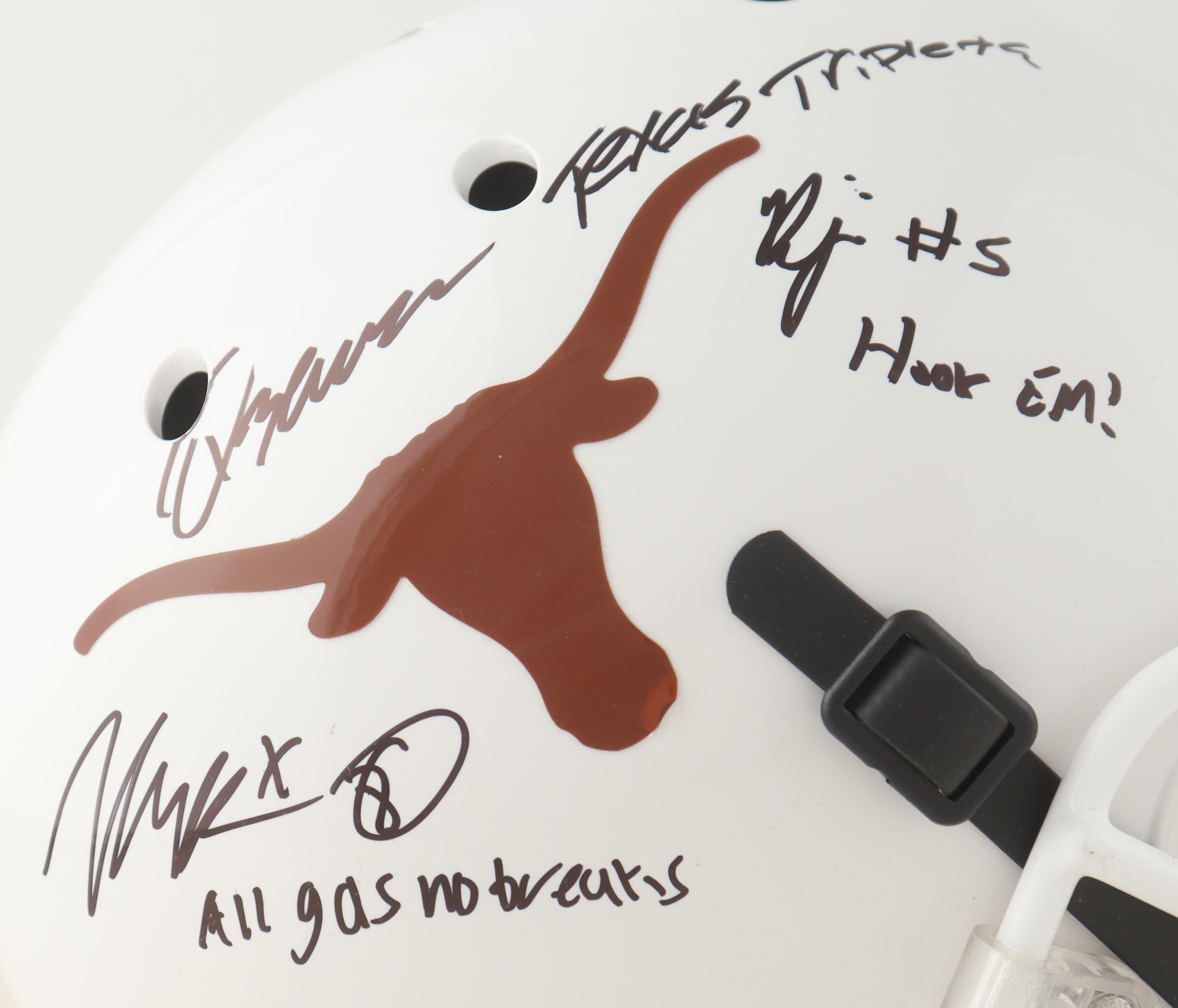 Bijan Robinson, Xavier Worthy & Quinn Ewers Signed Texas Longhorns Full-Size Helmet Inscribed "Hook Em!", "Hook Em!" & "All Gas No Breaks" (Beckett)