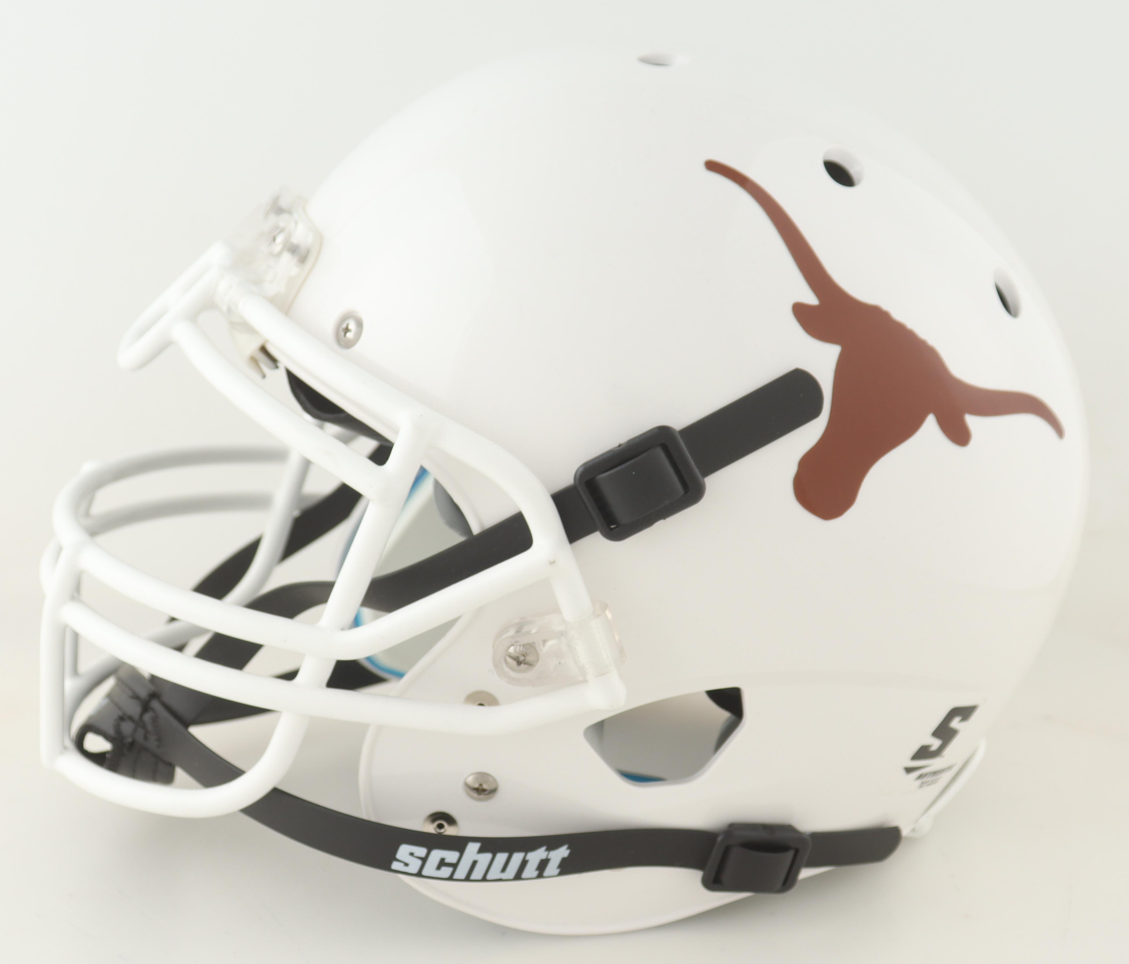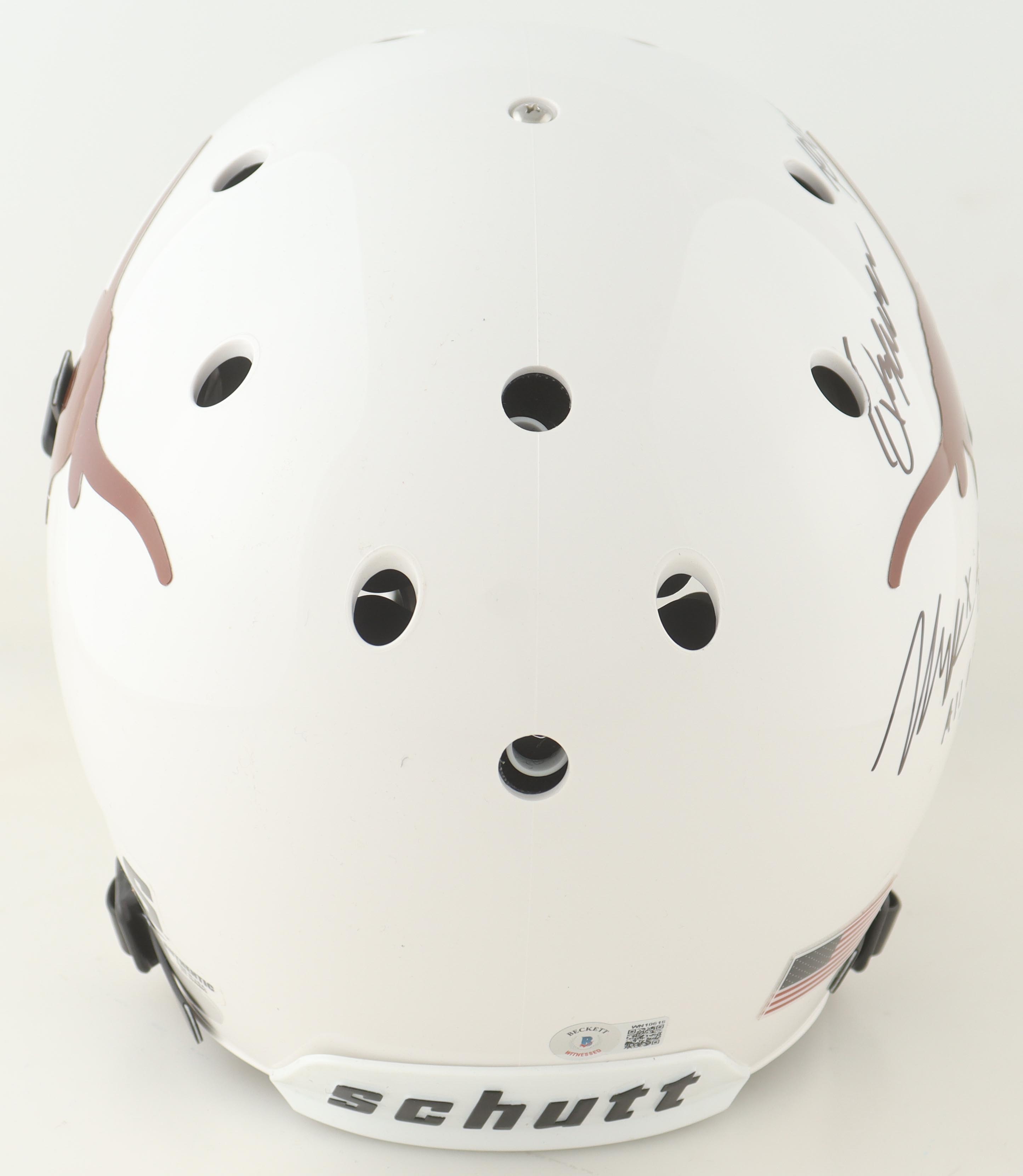 Riddell Texas Longhorns full-size replica helmet. Hand-signed and inscribed by Bijan Robinson, Xavier Worthy & Quinn Ewers.