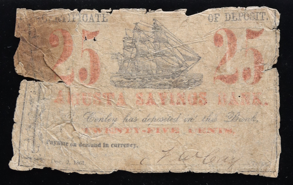 1861 Augusta Savings Bank 25¢ Twenty-Five Cents Banknote