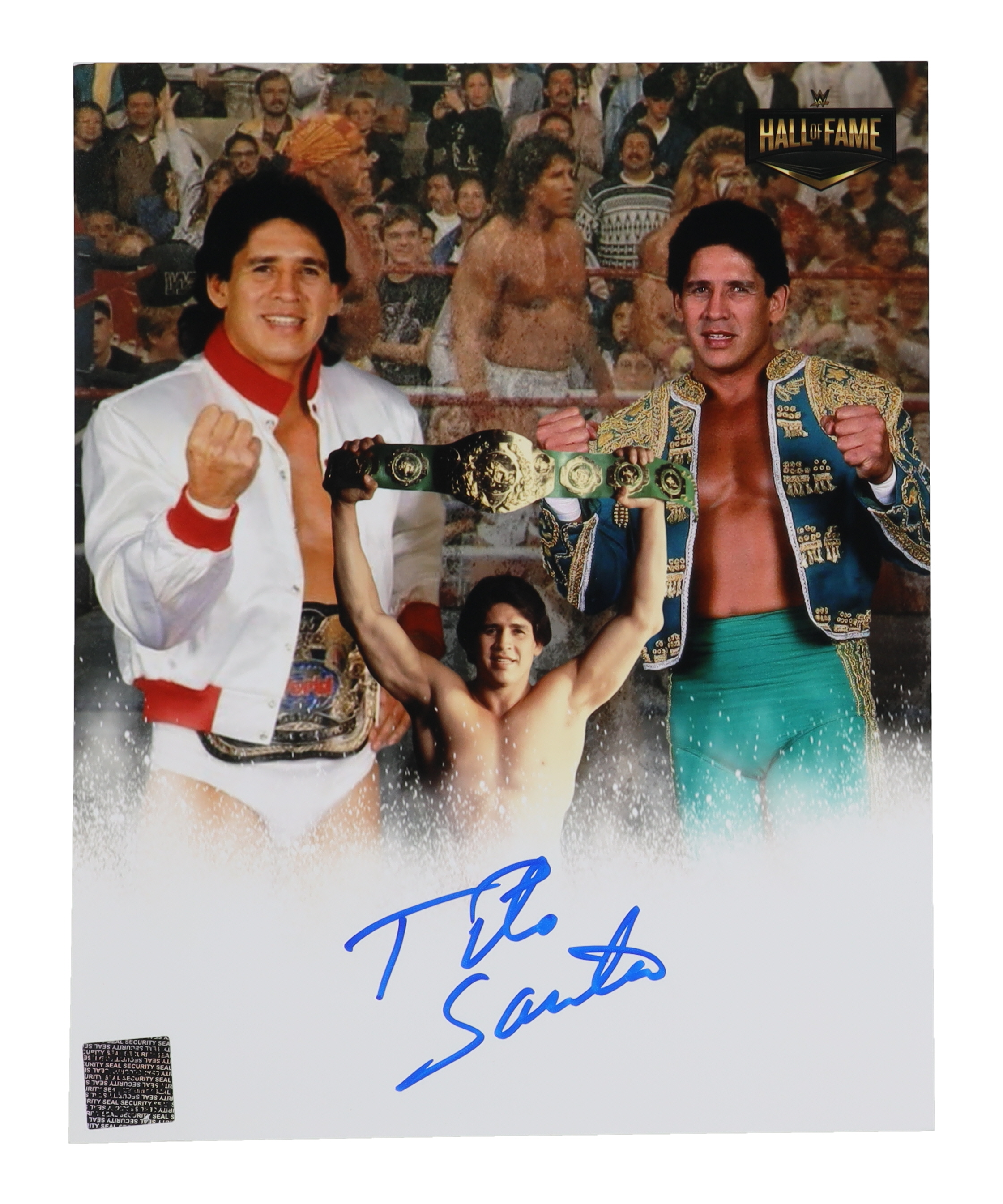 Photo measures 8" x 10" in size. Hand-signed by Tito Santana (HOF).