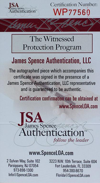 The autograph(s) includes an official James Spence Authentication (JSA) hologram and matching COA for authenticity purposes. The signing of this item was witnessed by JSA.