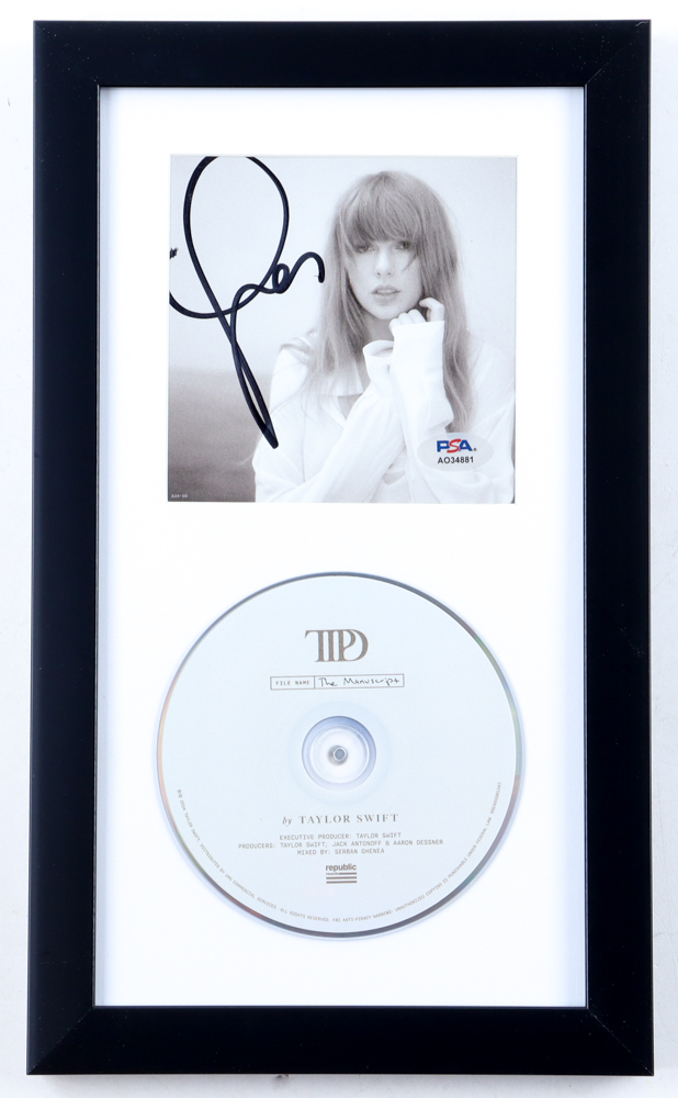 Custom frame measures approximately 8" x 13.5" in size. Features a "The Torture Poets Department" CD insert that has been hand-signed by Taylor Swift. The display also includes the disc as shown.