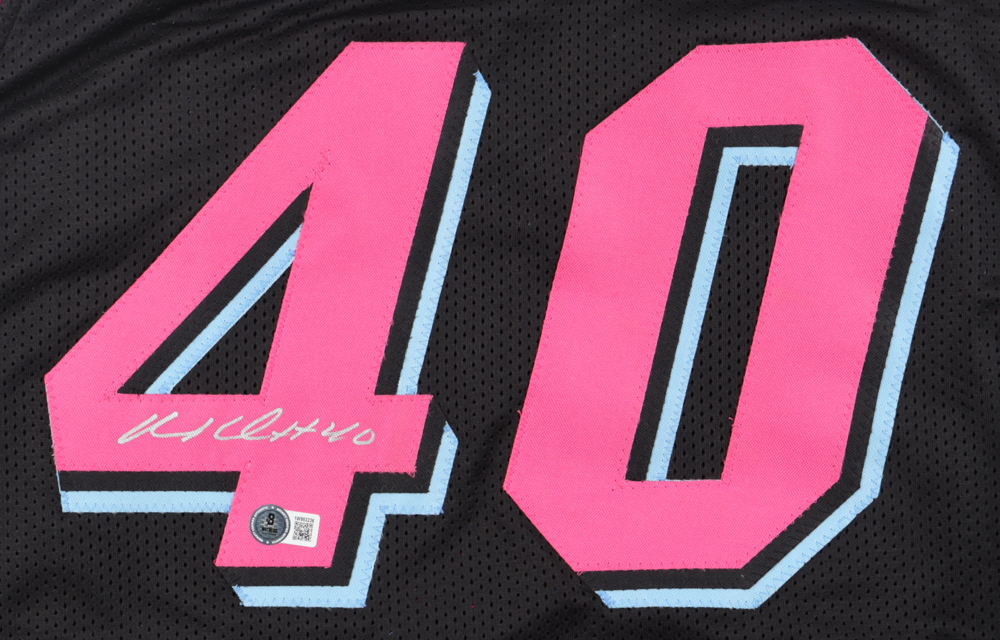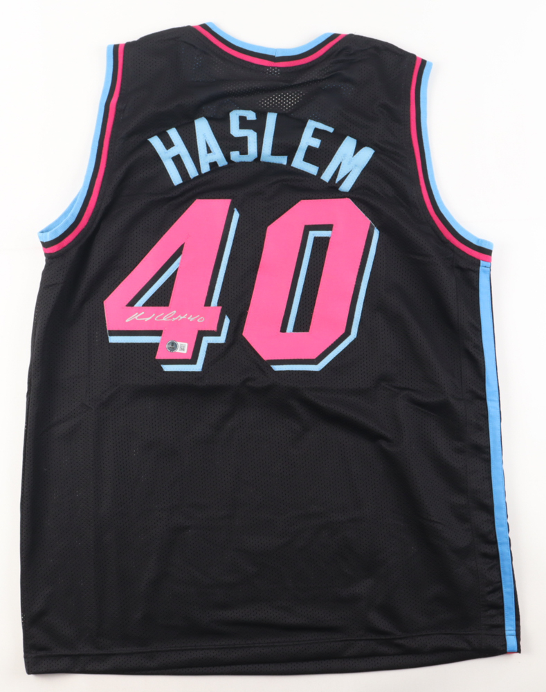 Custom jersey with everything sewn on, size XL. Hand-signed by Udonis Haslem.