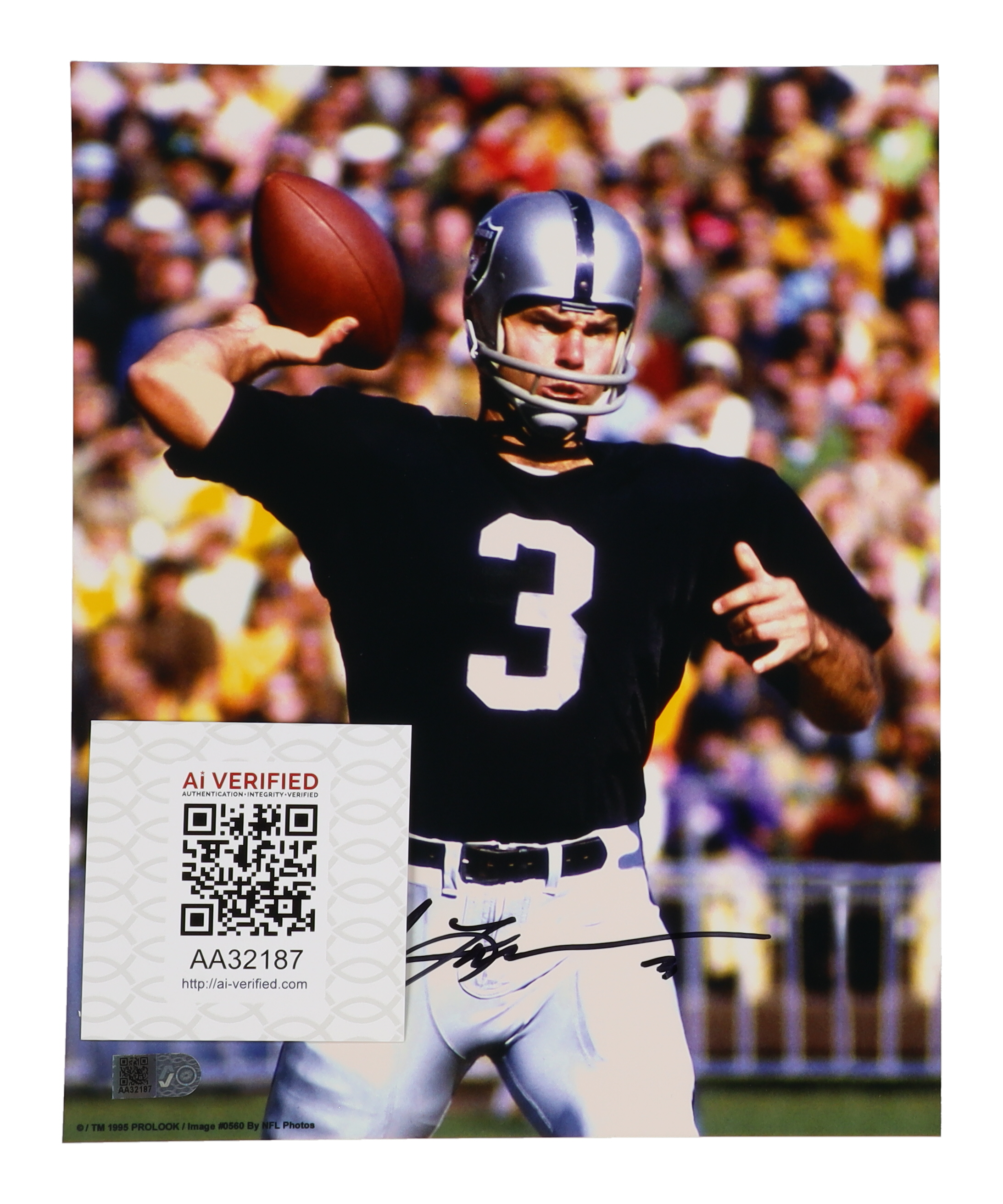 Photo measures 8" x 10" in size and has been hand-signed by Daryle Lamonica (D. 2022, Oakland Raiders).