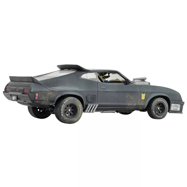 The Pursuit Special, also referred to as the Last of the V8 Interceptors, is the classic black GT Falcon muscle car featuring a distinctive supercharger that has been the iconic Mad Max car. Interceptor ships in original color display box, made of die-cast and plastic parts with rubber tires and detailed weathered paint effect on exterior.