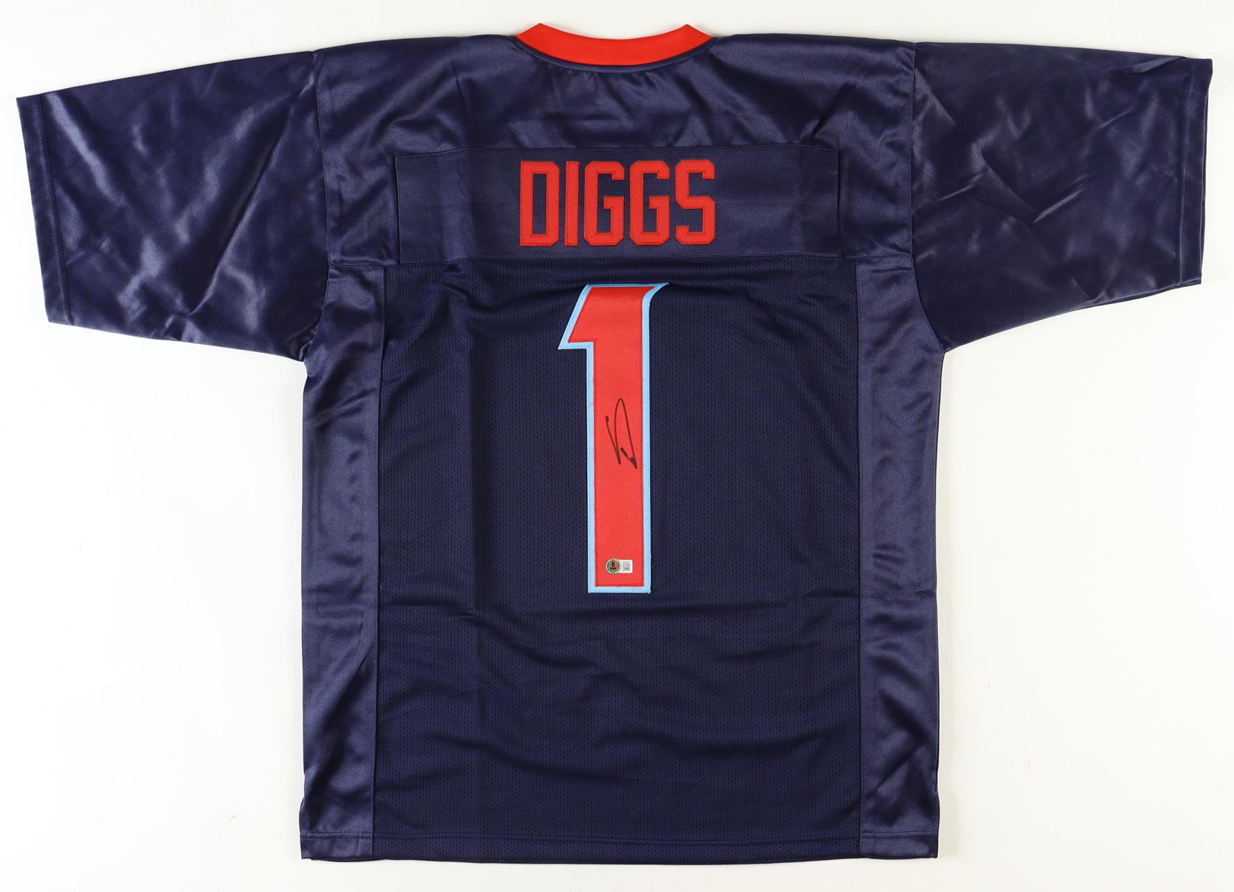 Custom jersey with everything sewn on, size XL. Hand-signed by Stefon Diggs.