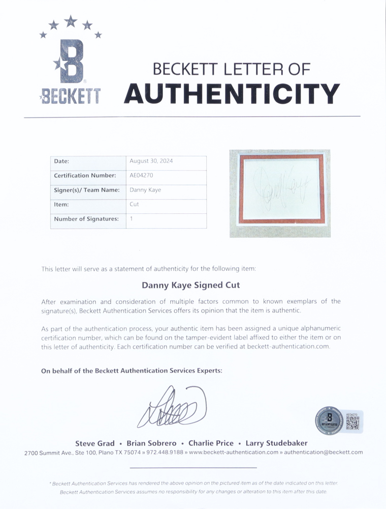 Danny Kaye Signed "The Secret Life of Walter Mitty" Custom Framed Cut Display (Beckett)