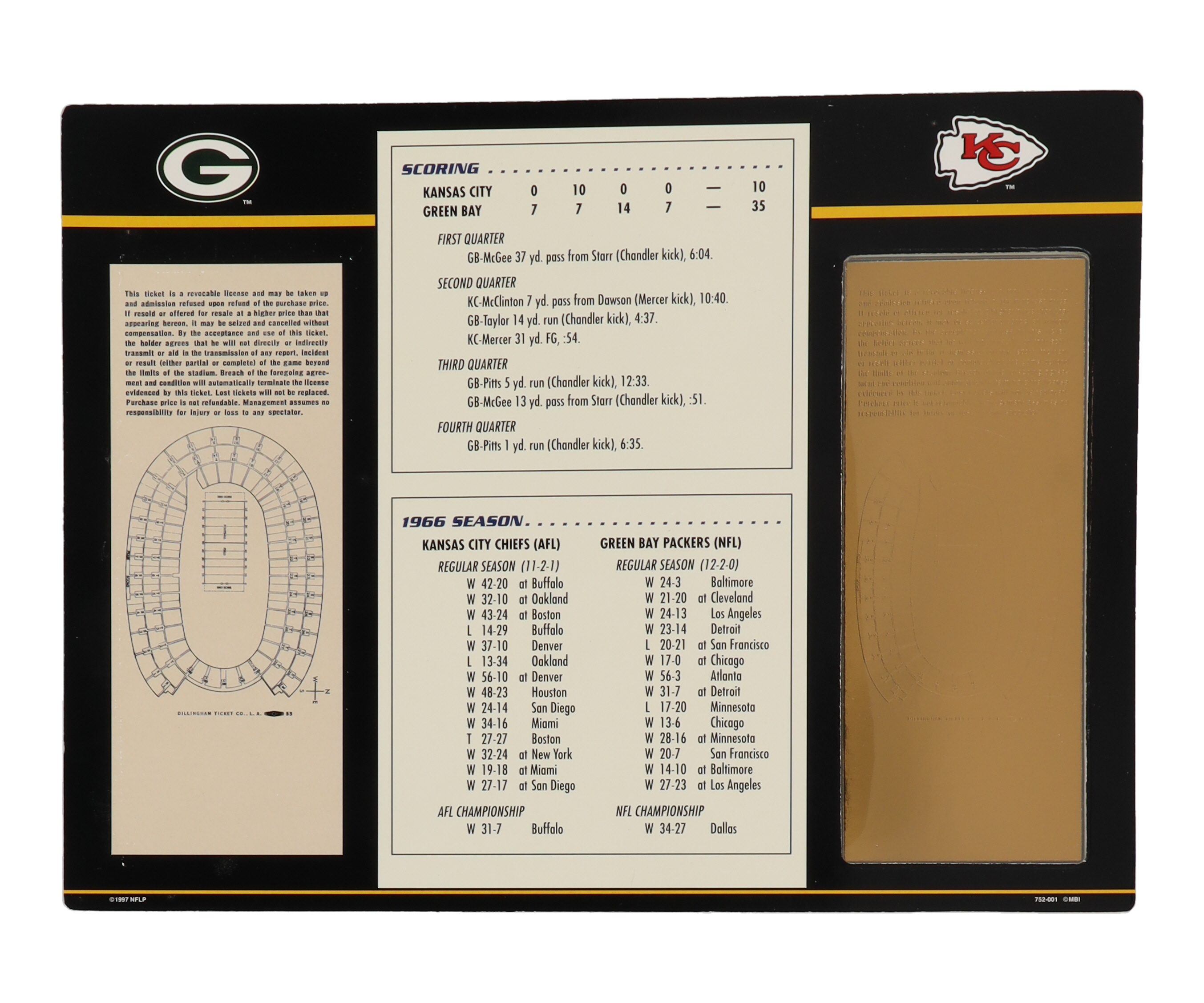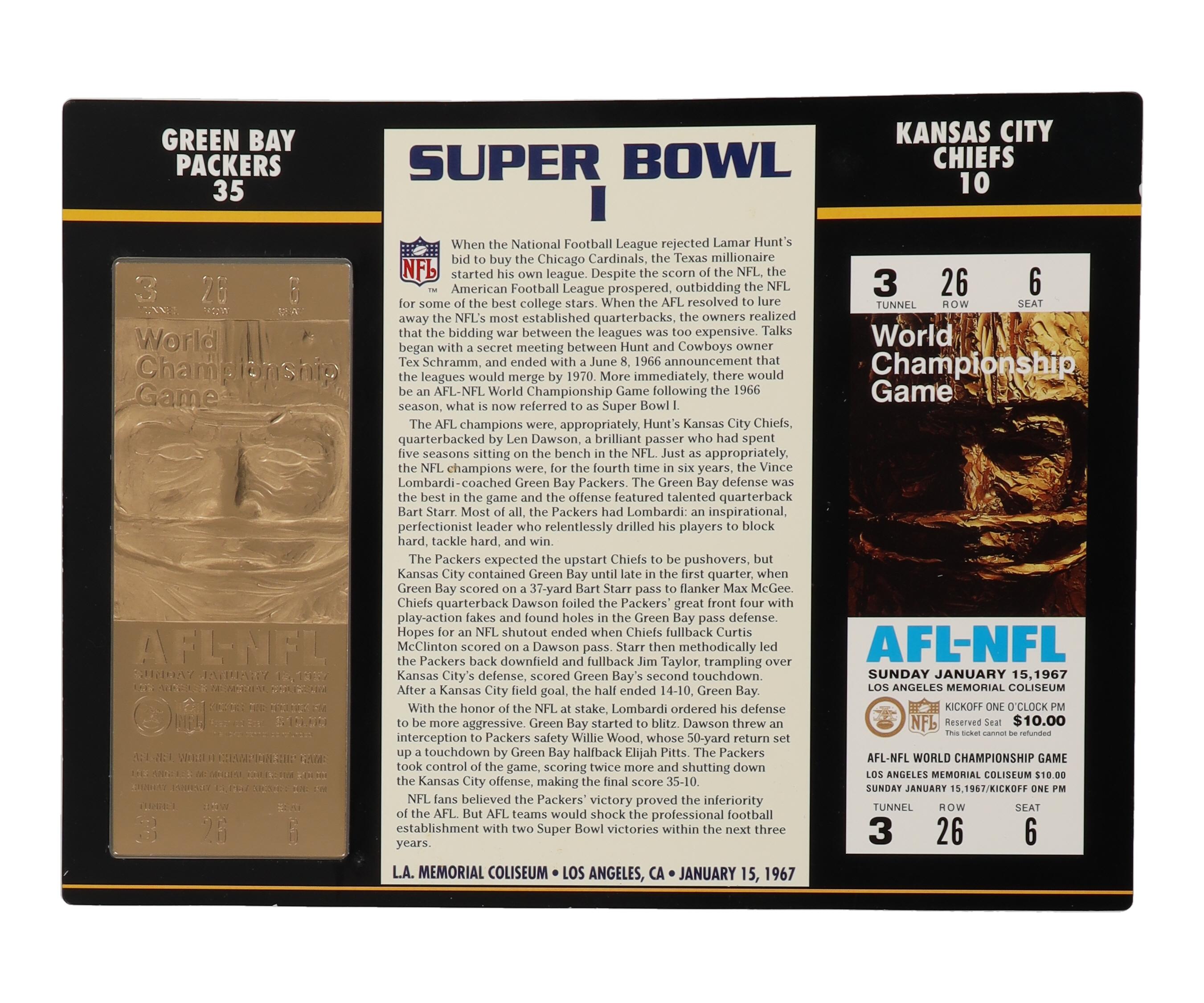 Super Bowl I Commemorative 9x12 Score Card Display with 22kt Gold Ticket